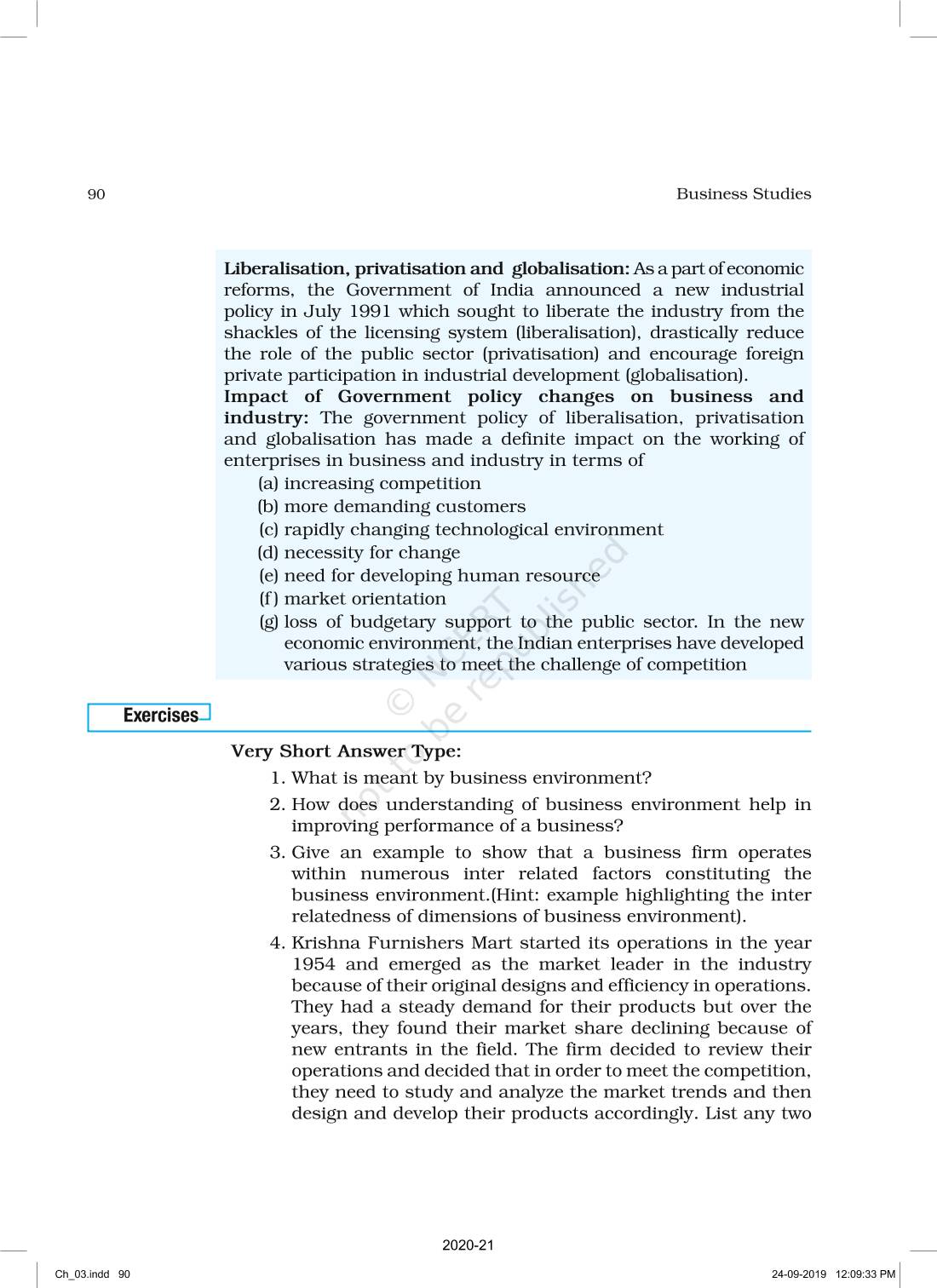 The time when students had limited options of choice for NCERT books wherein they need to go to the bookstore to buy the books but here at BeTrained.in, you can read the complete chapter-Business Environment of NCERT books for class 12 Business Studies Part I. If CBSE class 12 students are finding it hard to search for NCERT Business Studies Part I books online, then this is the right place as we have provided the textbooks of NCERT chapter wise. These books are available on our website for free along with NCERT Solutions and Exemplar solutions.