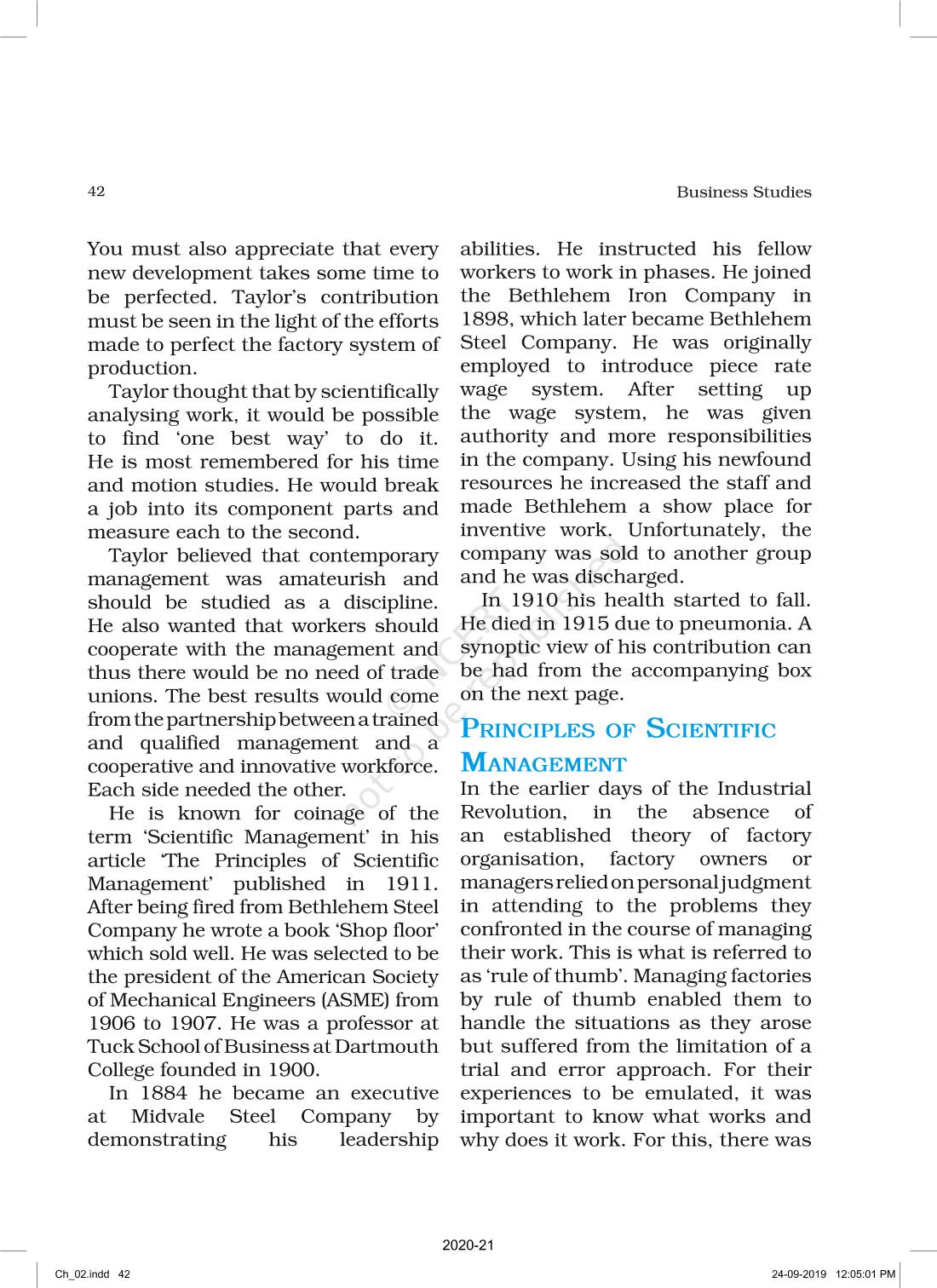 The time when students had limited options of choice for NCERT books wherein they need to go to the bookstore to buy the books but here at BeTrained.in, you can read the complete chapter-Principles Of Management of NCERT books for class 12 Business Studies Part I. If CBSE class 12 students are finding it hard to search for NCERT Business Studies Part I books online, then this is the right place as we have provided the textbooks of NCERT chapter wise. These books are available on our website for free along with NCERT Solutions and Exemplar solutions.