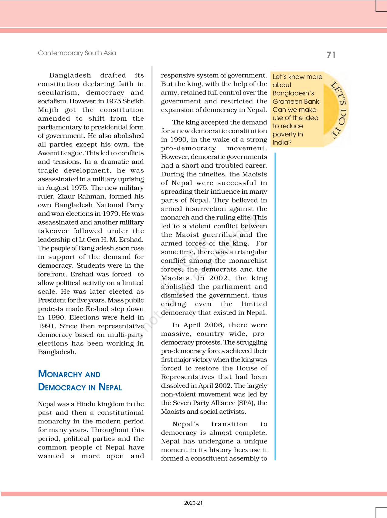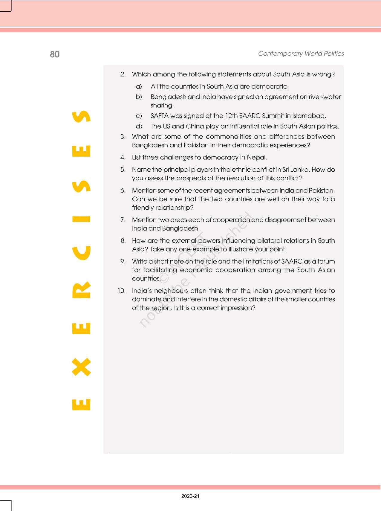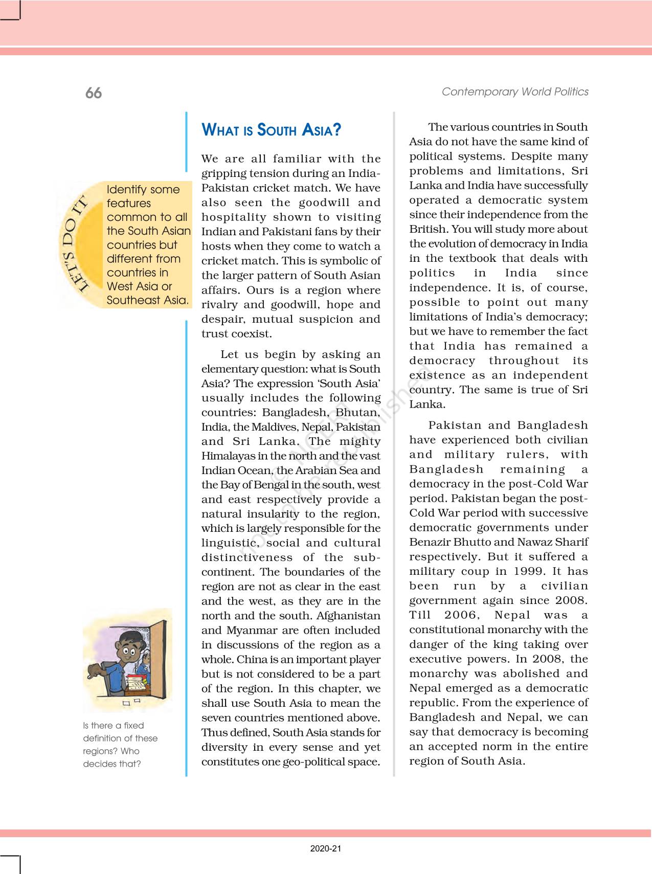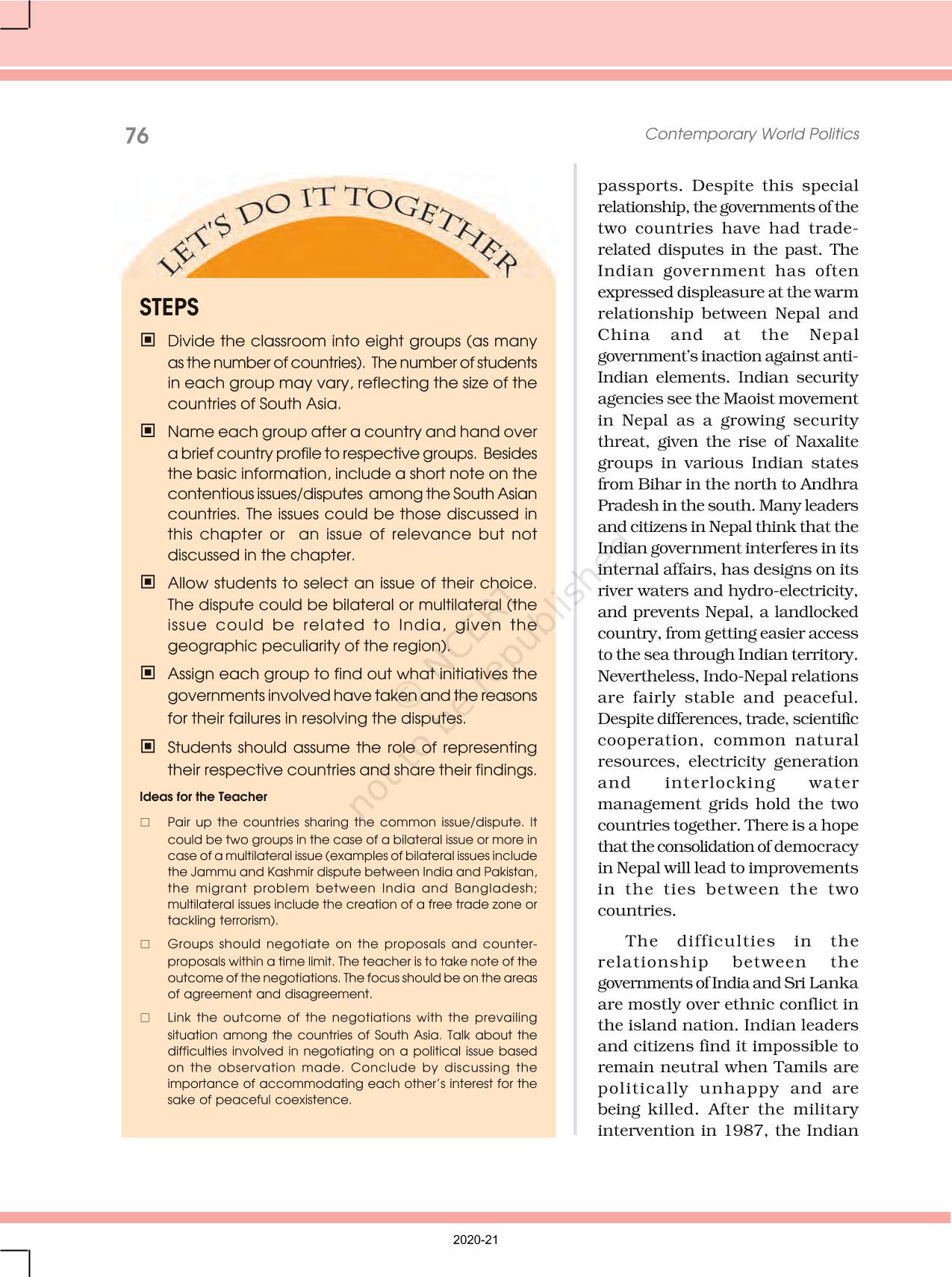 The time when students had limited options of choice for NCERT books wherein they need to go to the bookstore to buy the books but here at BeTrained.in, you can read the complete chapter-Contemporary South Asia of NCERT books for class 12 Contemporary World Politics. If CBSE class 12 students are finding it hard to search for NCERT Contemporary World Politics books online, then this is the right place as we have provided the textbooks of NCERT chapter wise. These books are available on our website for free along with NCERT Solutions and Exemplar solutions.