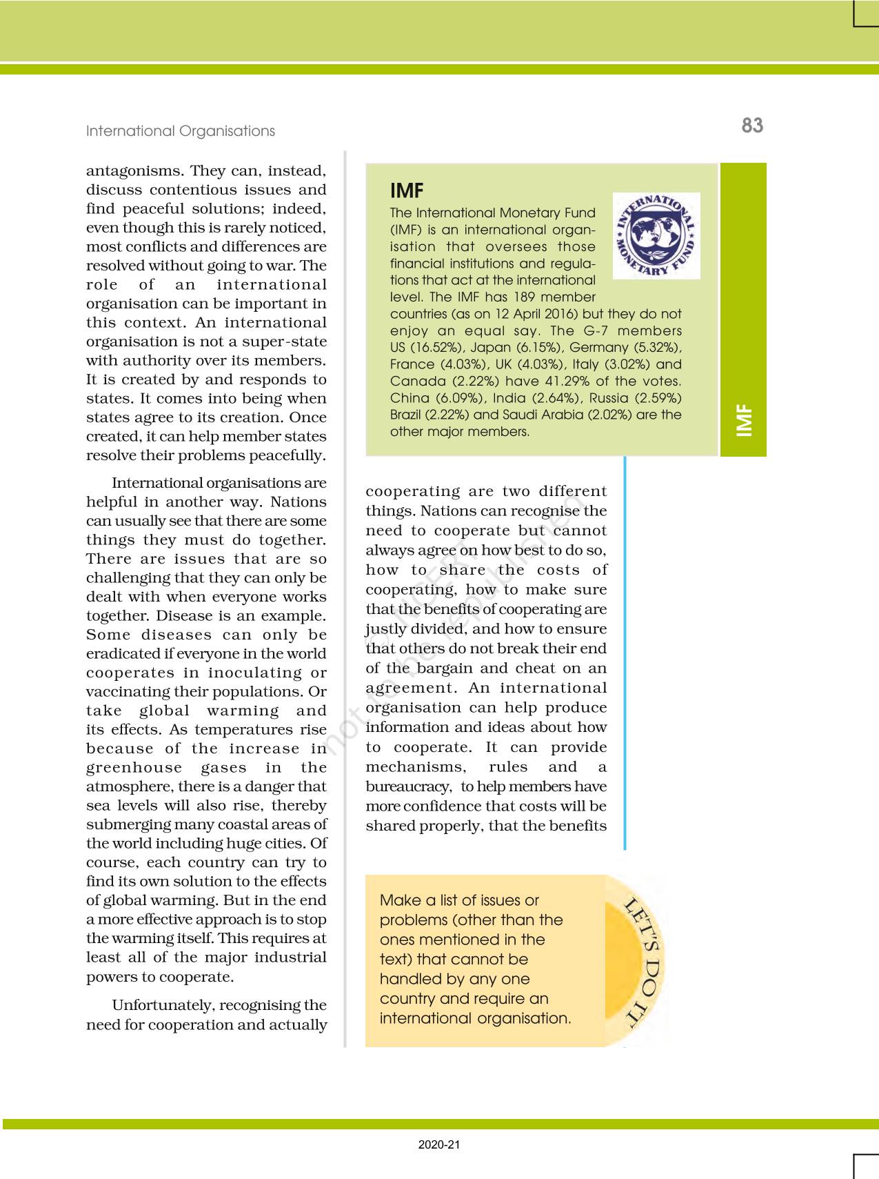 The time when students had limited options of choice for NCERT books wherein they need to go to the bookstore to buy the books but here at BeTrained.in, you can read the complete chapter-International Organisations of NCERT books for class 12 Contemporary World Politics. If CBSE class 12 students are finding it hard to search for NCERT Contemporary World Politics books online, then this is the right place as we have provided the textbooks of NCERT chapter wise. These books are available on our website for free along with NCERT Solutions and Exemplar solutions.