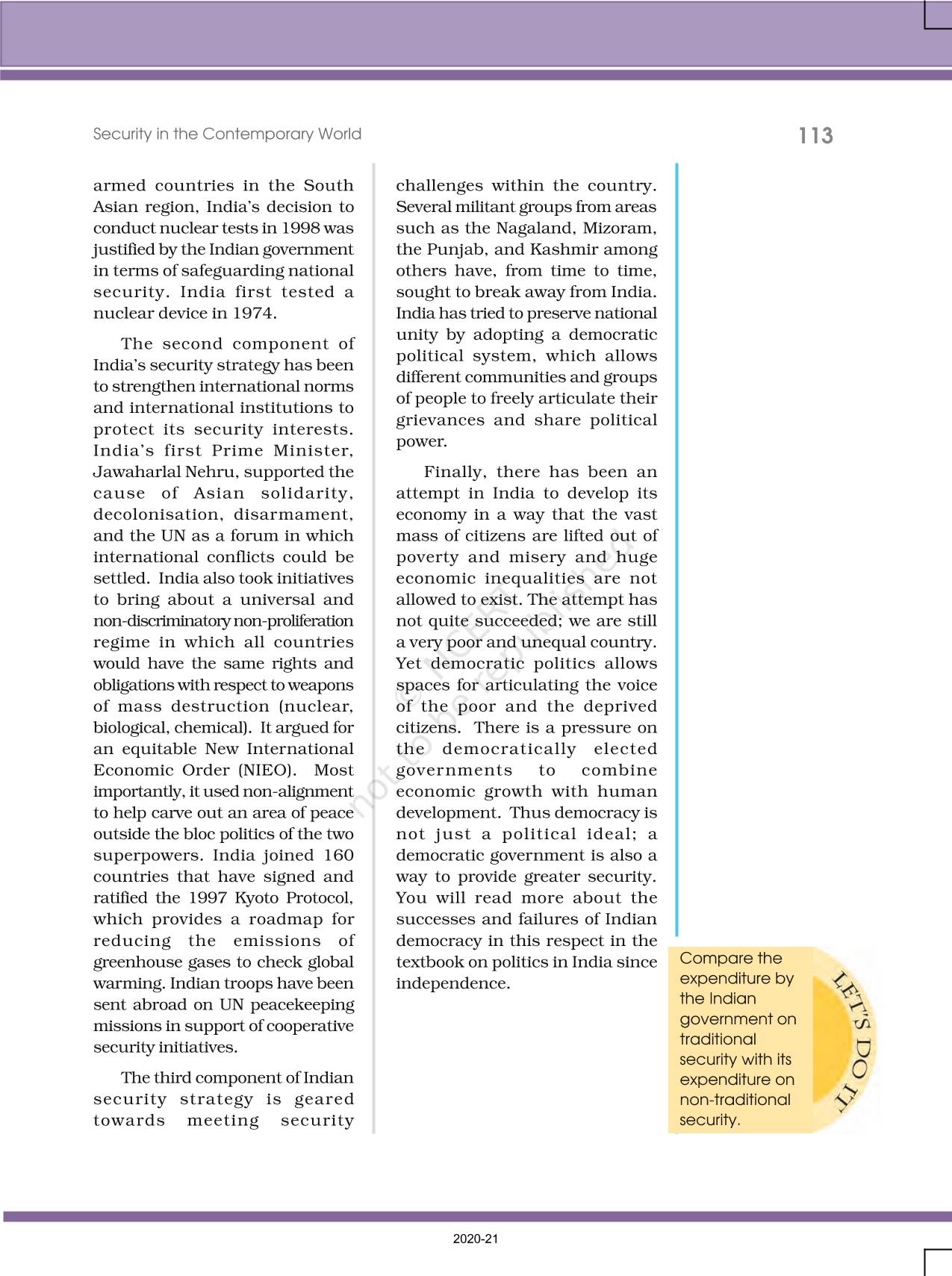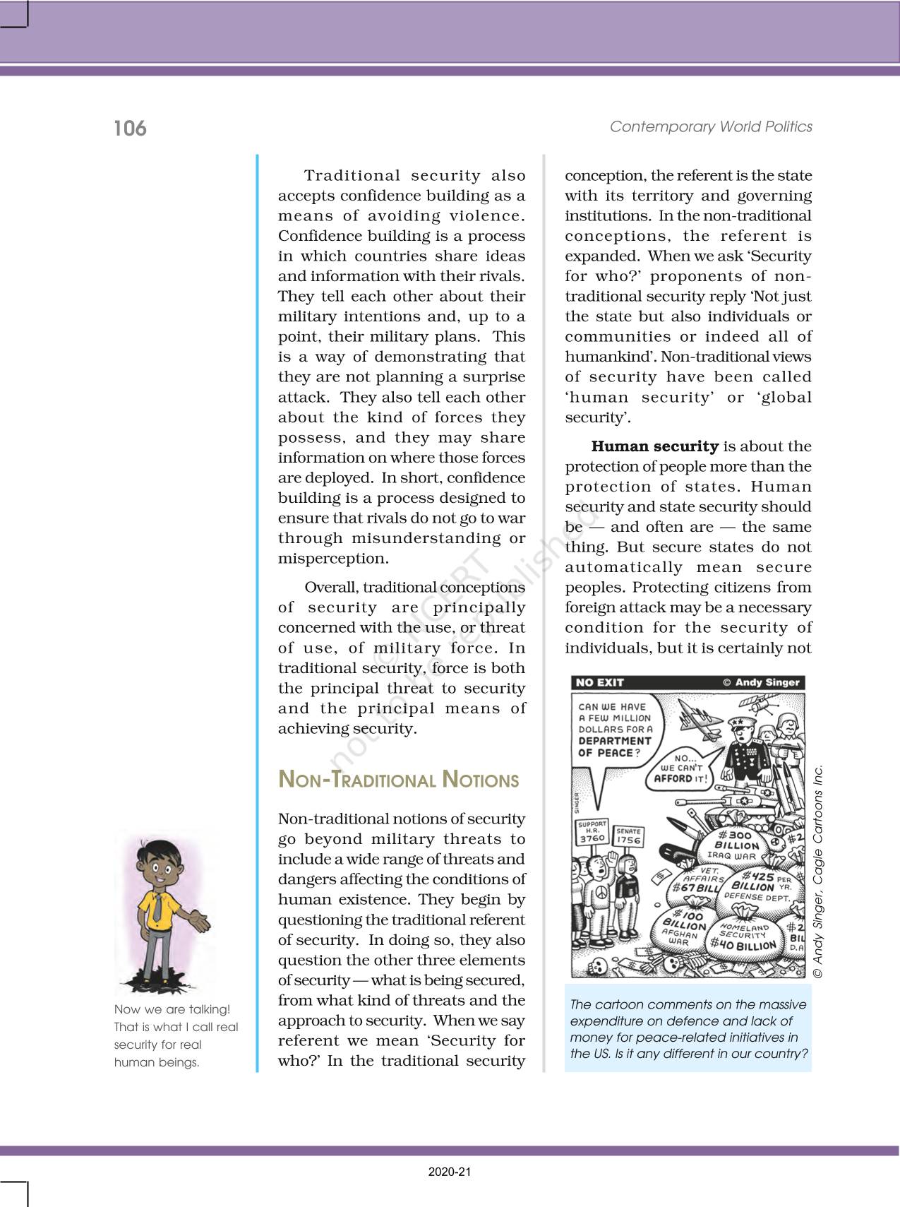 The time when students had limited options of choice for NCERT books wherein they need to go to the bookstore to buy the books but here at BeTrained.in, you can read the complete chapter-Security In The Contemporary World of NCERT books for class 12 Contemporary World Politics. If CBSE class 12 students are finding it hard to search for NCERT Contemporary World Politics books online, then this is the right place as we have provided the textbooks of NCERT chapter wise. These books are available on our website for free along with NCERT Solutions and Exemplar solutions.