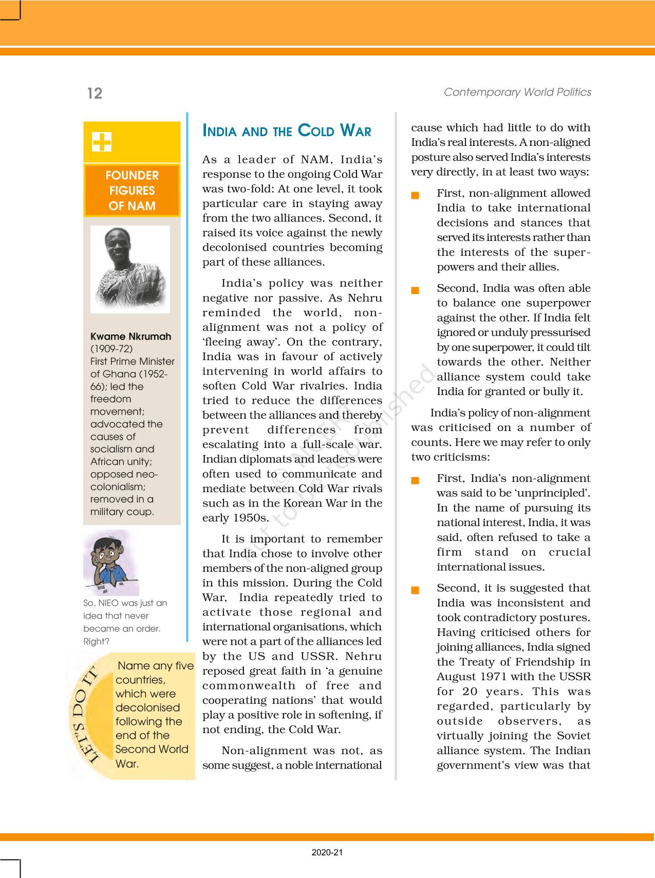 BeTrained.in has brought the NCERT books for class 12 Contemporary World Politics where you can find every topic explained in a detailed way. These books are recommended by CBSE and some other state boards. Most of the teachers also use these books for teaching in schools. It is also used as a reference to prepare the questions for mid-term and final exams. The topics are explained in a very easy language along with examples and diagrams. Also, ideal for comprehensive and thorough learning to develop a clear concept. The chapters in the books have illustrative examples and practice problems for getting a hold of any kind of concept.