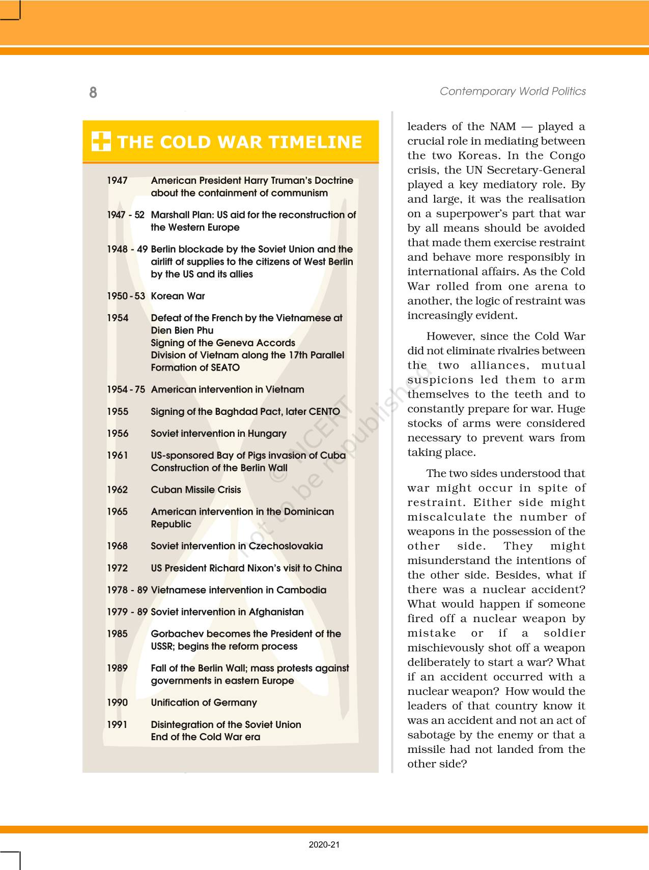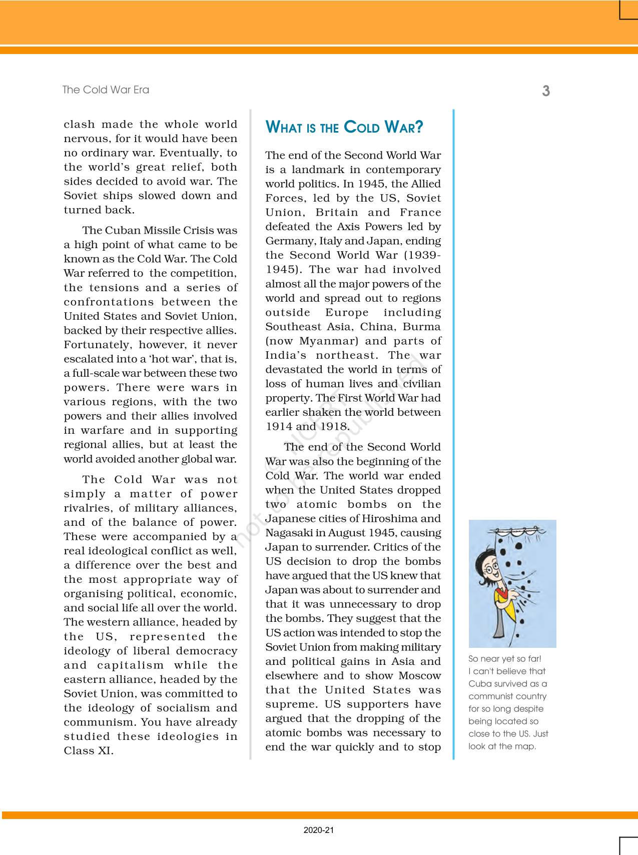 The time when students had limited options of choice for NCERT books wherein they need to go to the bookstore to buy the books but here at BeTrained.in, you can read the complete chapter-The Cold War Era of NCERT books for class 12 Contemporary World Politics. If CBSE class 12 students are finding it hard to search for NCERT Contemporary World Politics books online, then this is the right place as we have provided the textbooks of NCERT chapter wise. These books are available on our website for free along with NCERT Solutions and Exemplar solutions.