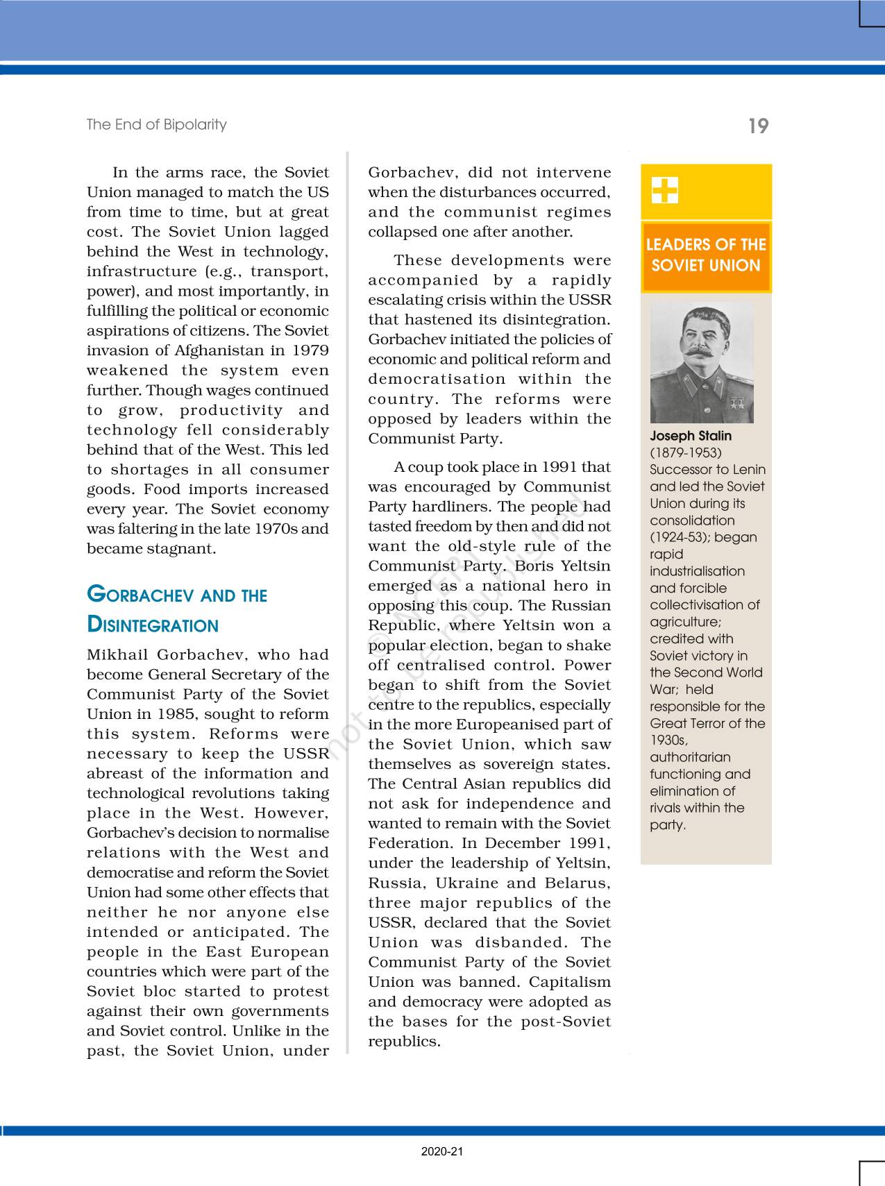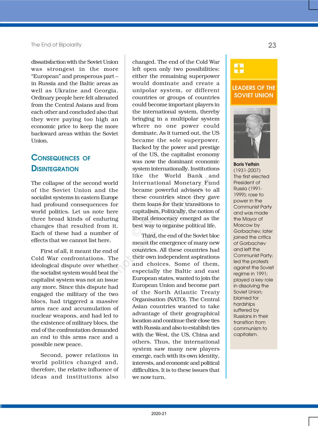 The time when students had limited options of choice for NCERT books wherein they need to go to the bookstore to buy the books but here at BeTrained.in, you can read the complete chapter-The End Of Bipolarity of NCERT books for class 12 Contemporary World Politics. If CBSE class 12 students are finding it hard to search for NCERT Contemporary World Politics books online, then this is the right place as we have provided the textbooks of NCERT chapter wise. These books are available on our website for free along with NCERT Solutions and Exemplar solutions.