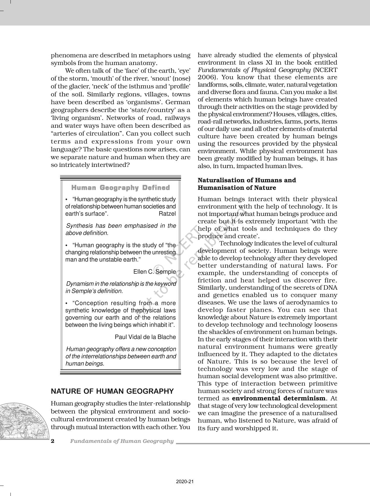 The time when students had limited options of choice for NCERT books wherein they need to go to the bookstore to buy the books but here at BeTrained.in, you can read the complete chapter-Human Geography Nature And Scope of NCERT books for class 12 Fundamentals Of Human Geography. If CBSE class 12 students are finding it hard to search for NCERT Fundamentals Of Human Geography books online, then this is the right place as we have provided the textbooks of NCERT chapter wise. These books are available on our website for free along with NCERT Solutions and Exemplar solutions.