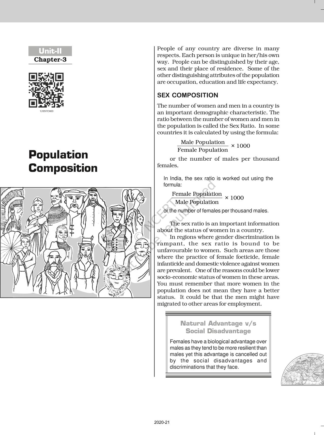 The time when students had limited options of choice for NCERT books wherein they need to go to the bookstore to buy the books but here at BeTrained.in, you can read the complete chapter-Population Composition of NCERT books for class 12 Fundamentals Of Human Geography. If CBSE class 12 students are finding it hard to search for NCERT Fundamentals Of Human Geography books online, then this is the right place as we have provided the textbooks of NCERT chapter wise. These books are available on our website for free along with NCERT Solutions and Exemplar solutions.