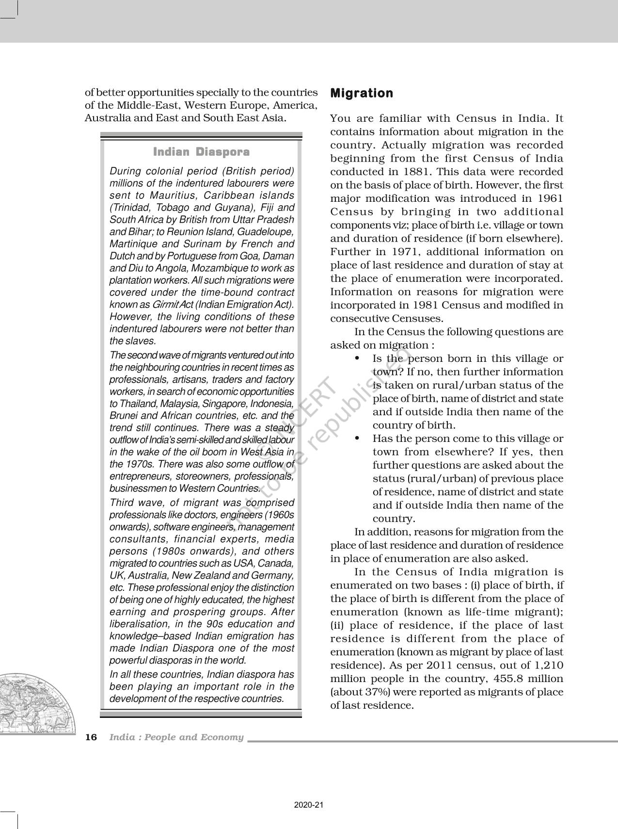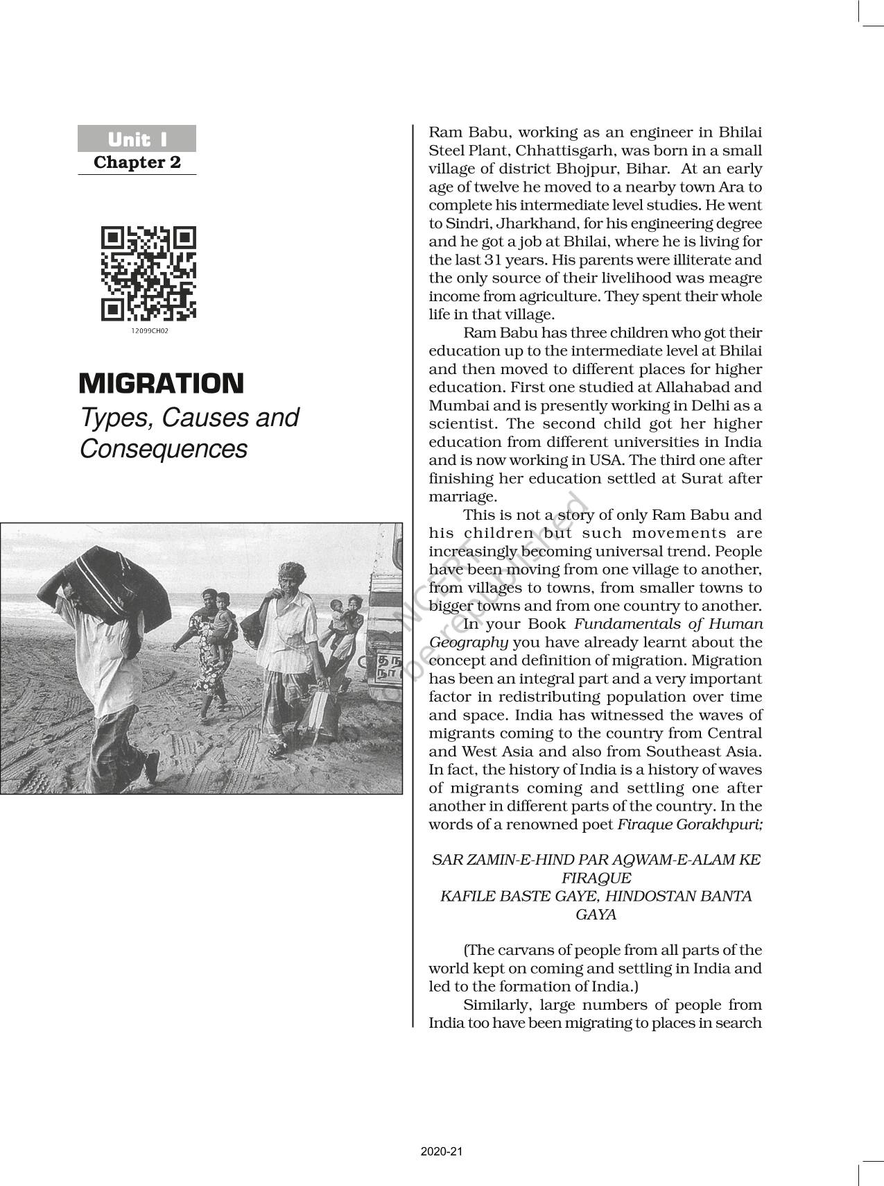 The time when students had limited options of choice for NCERT books wherein they need to go to the bookstore to buy the books but here at BeTrained.in, you can read the complete chapter-Migration Types Causes And Consequences of NCERT books for class 12 India People And Economy. If CBSE class 12 students are finding it hard to search for NCERT India People And Economy books online, then this is the right place as we have provided the textbooks of NCERT chapter wise. These books are available on our website for free along with NCERT Solutions and Exemplar solutions.