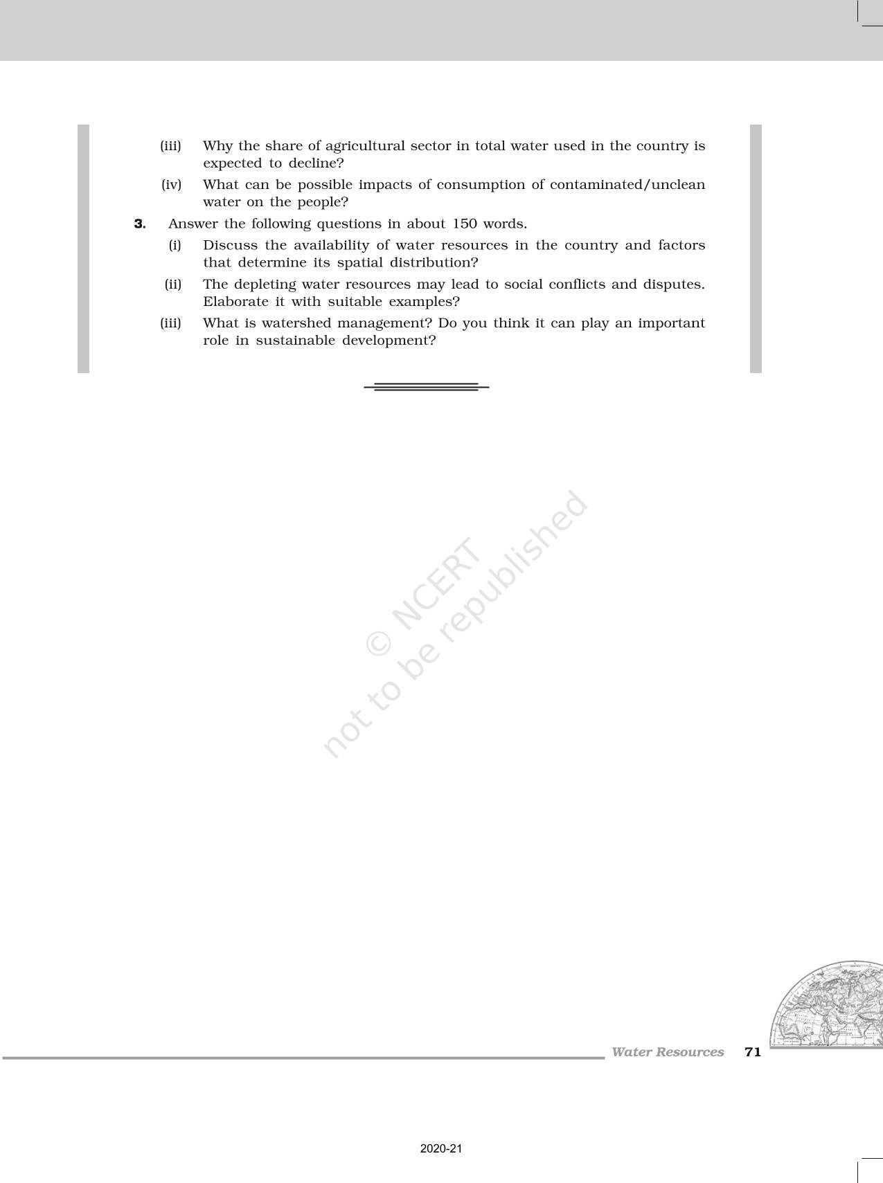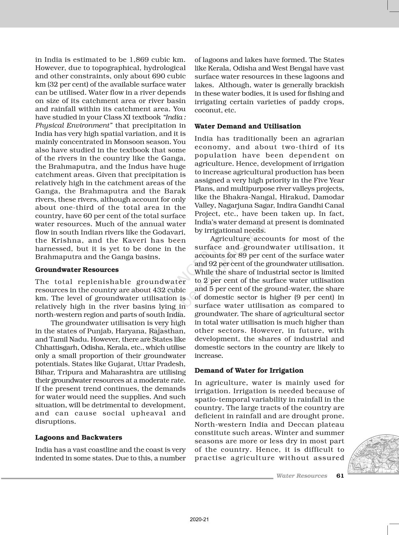 The time when students had limited options of choice for NCERT books wherein they need to go to the bookstore to buy the books but here at BeTrained.in, you can read the complete chapter-Water Resources of NCERT books for class 12 India People And Economy. If CBSE class 12 students are finding it hard to search for NCERT India People And Economy books online, then this is the right place as we have provided the textbooks of NCERT chapter wise. These books are available on our website for free along with NCERT Solutions and Exemplar solutions.