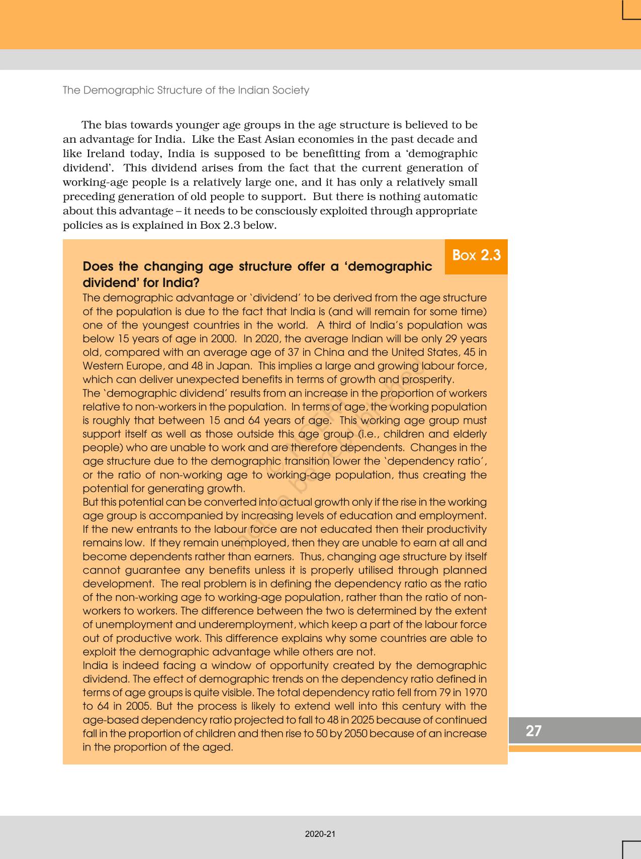 The time when students had limited options of choice for NCERT books wherein they need to go to the bookstore to buy the books but here at BeTrained.in, you can read the complete chapter-The Demographic Structure Of The Indian Society of NCERT books for class 12 Indian Society. If CBSE class 12 students are finding it hard to search for NCERT Indian Society books online, then this is the right place as we have provided the textbooks of NCERT chapter wise. These books are available on our website for free along with NCERT Solutions and Exemplar solutions.