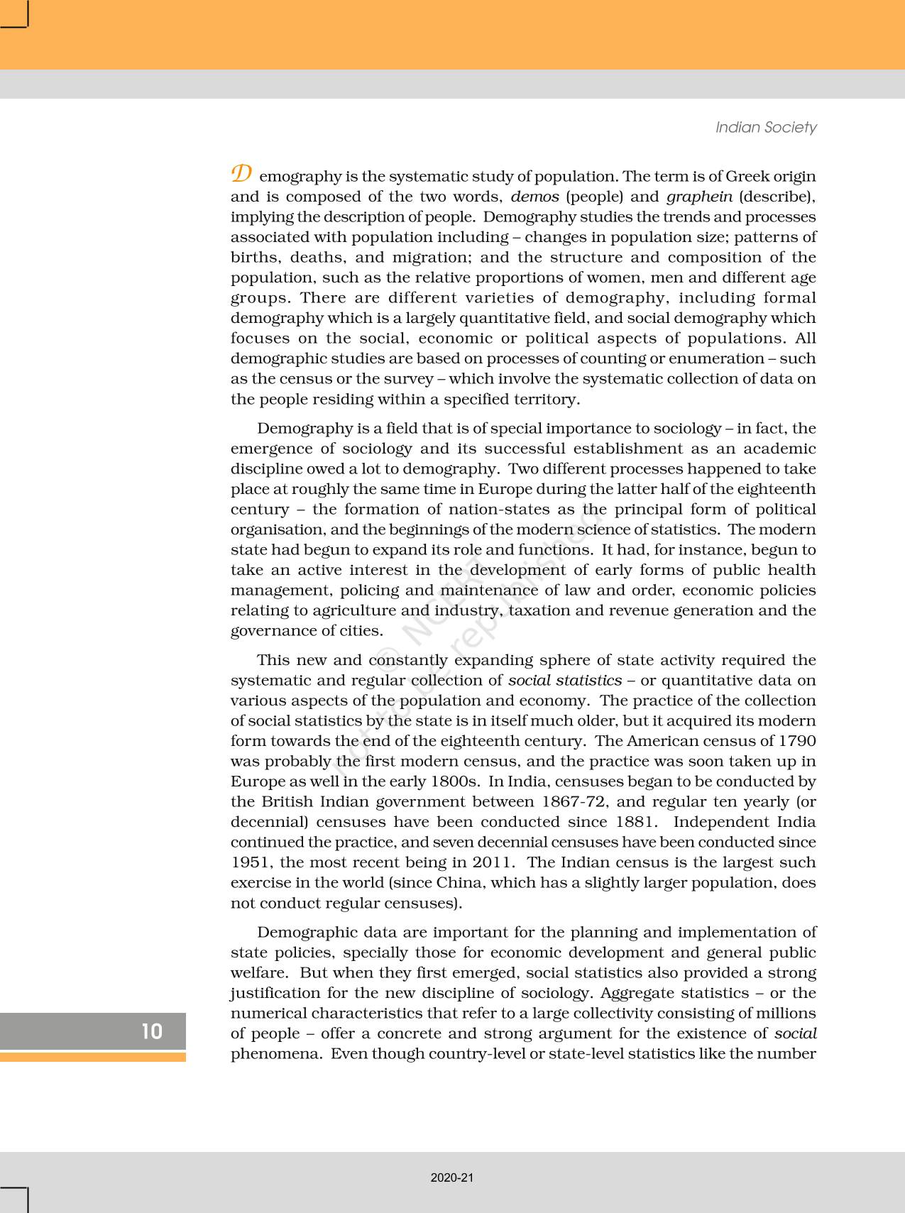 Chapter - The Demographic Structure Of The Indian Society