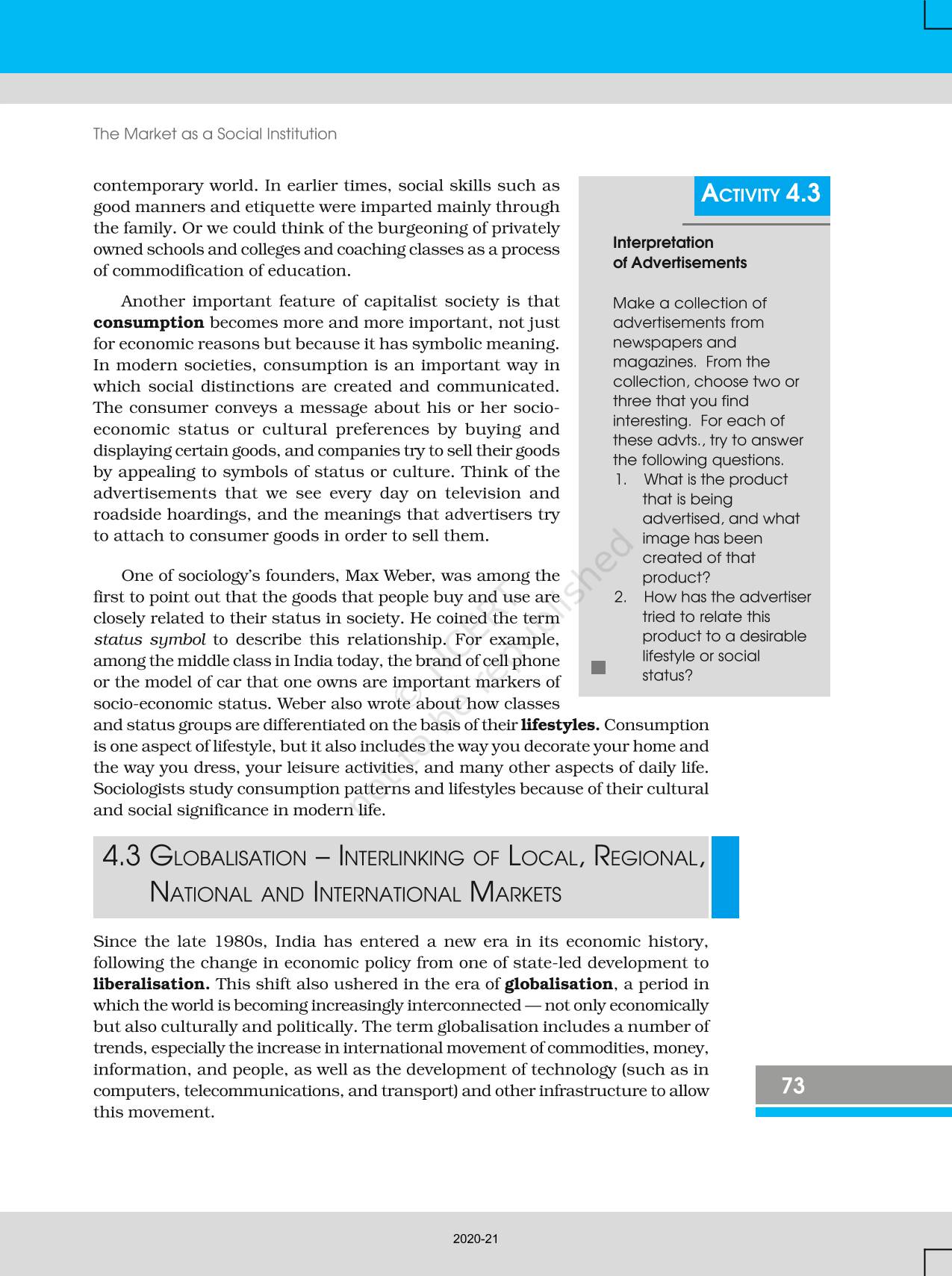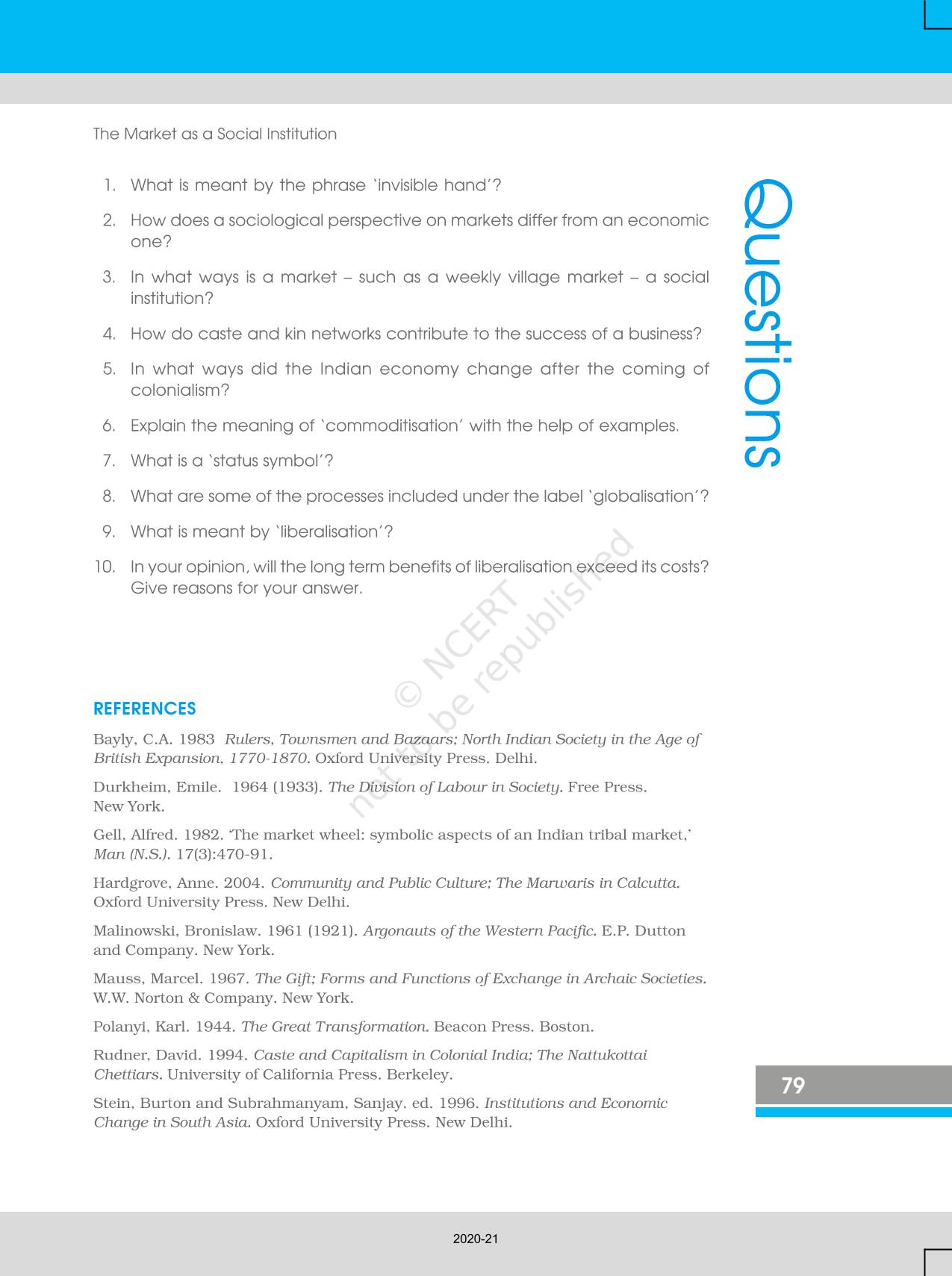 The time when students had limited options of choice for NCERT books wherein they need to go to the bookstore to buy the books but here at BeTrained.in, you can read the complete chapter-The Market As A Social Institution of NCERT books for class 12 Indian Society. If CBSE class 12 students are finding it hard to search for NCERT Indian Society books online, then this is the right place as we have provided the textbooks of NCERT chapter wise. These books are available on our website for free along with NCERT Solutions and Exemplar solutions.
