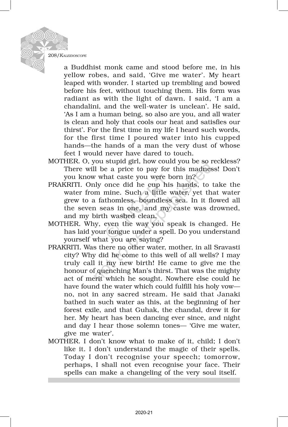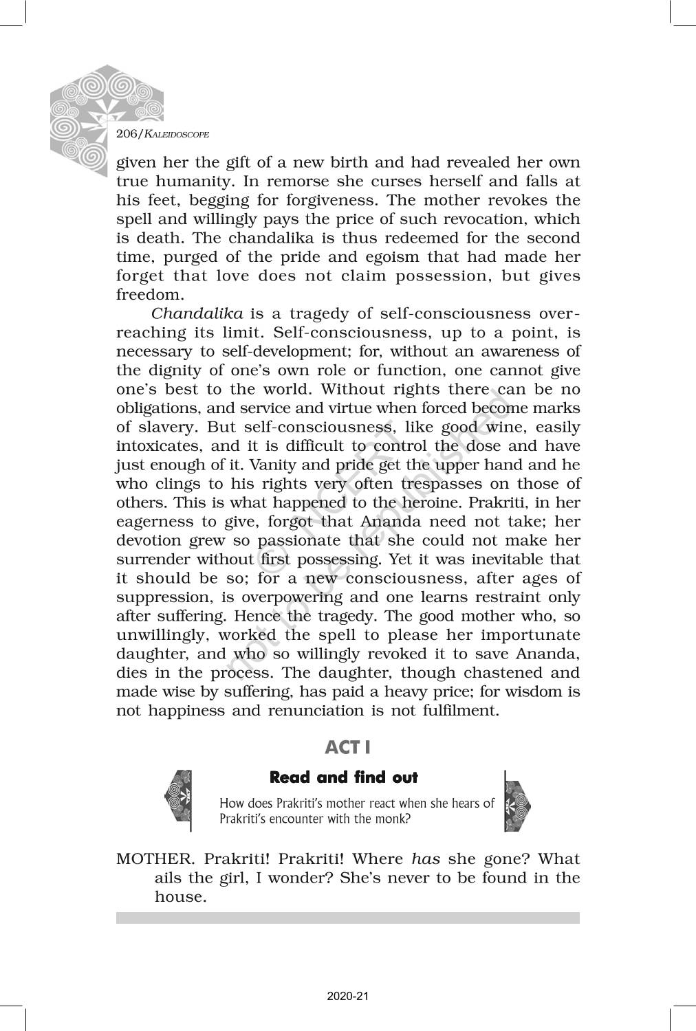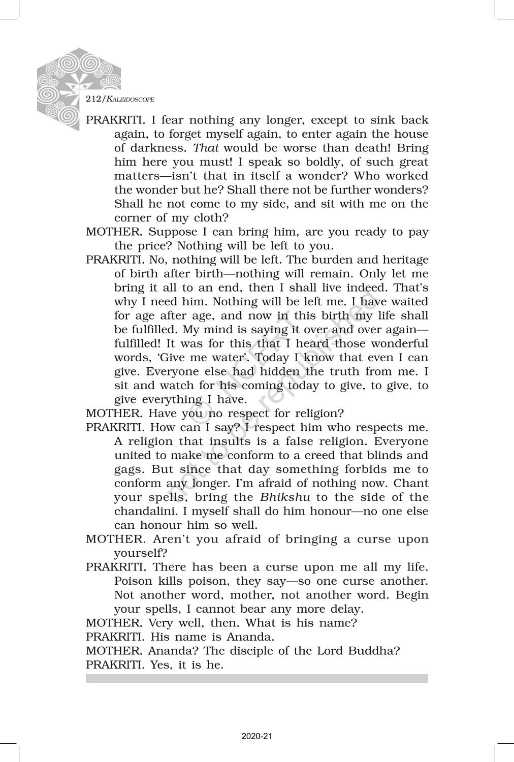 The time when students had limited options of choice for NCERT books wherein they need to go to the bookstore to buy the books but here at BeTrained.in, you can read the complete chapter-Drama 1 Chandalika of NCERT books for class 12 Kaleidoscope. If CBSE class 12 students are finding it hard to search for NCERT Kaleidoscope books online, then this is the right place as we have provided the textbooks of NCERT chapter wise. These books are available on our website for free along with NCERT Solutions and Exemplar solutions.