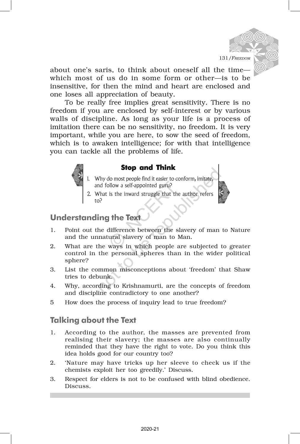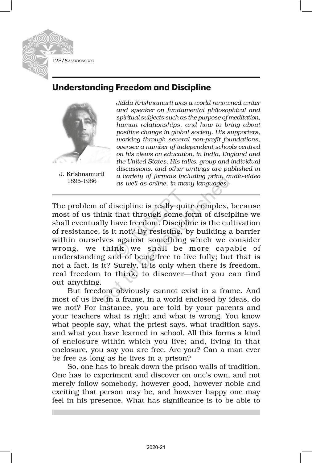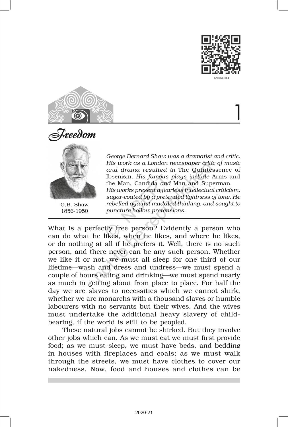 The time when students had limited options of choice for NCERT books wherein they need to go to the bookstore to buy the books but here at BeTrained.in, you can read the complete chapter-Non Fiction 1 Freedom of NCERT books for class 12 Kaleidoscope. If CBSE class 12 students are finding it hard to search for NCERT Kaleidoscope books online, then this is the right place as we have provided the textbooks of NCERT chapter wise. These books are available on our website for free along with NCERT Solutions and Exemplar solutions.