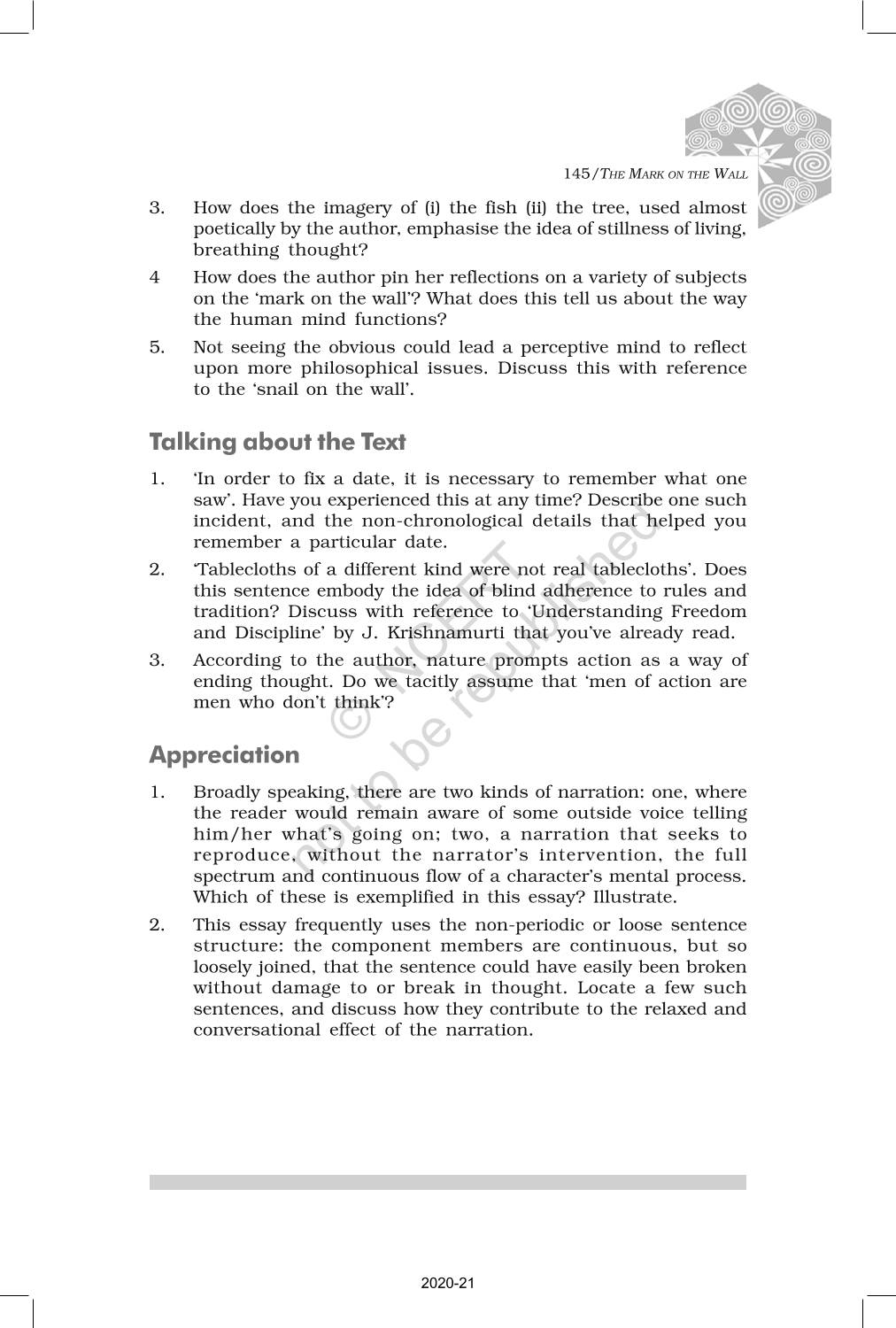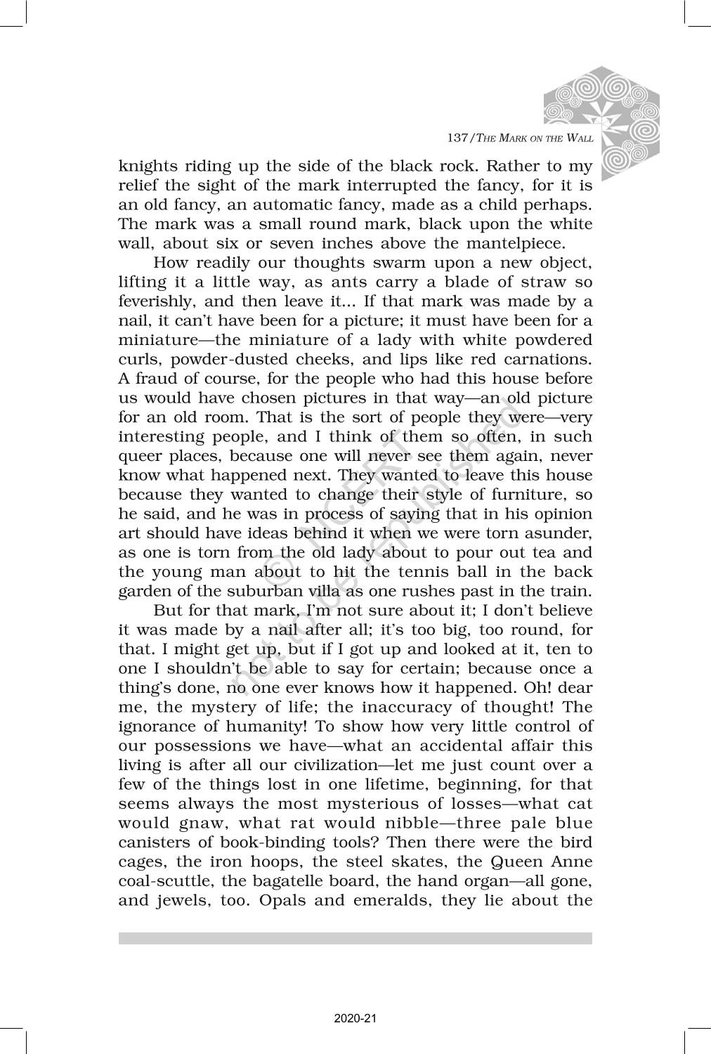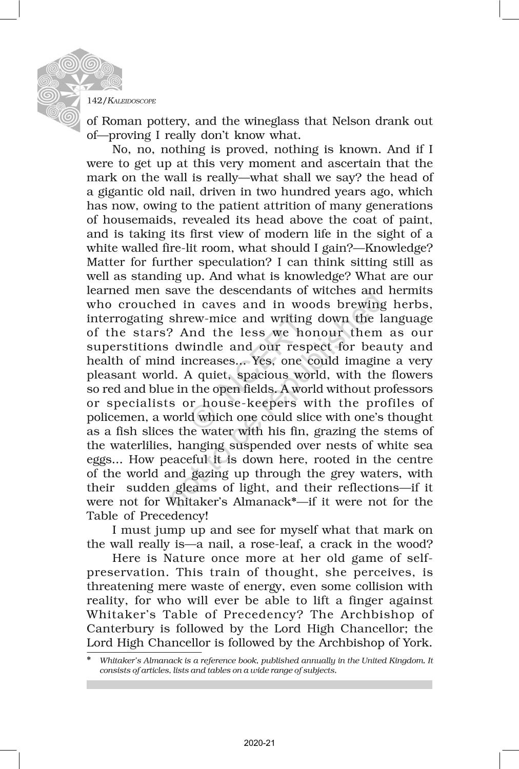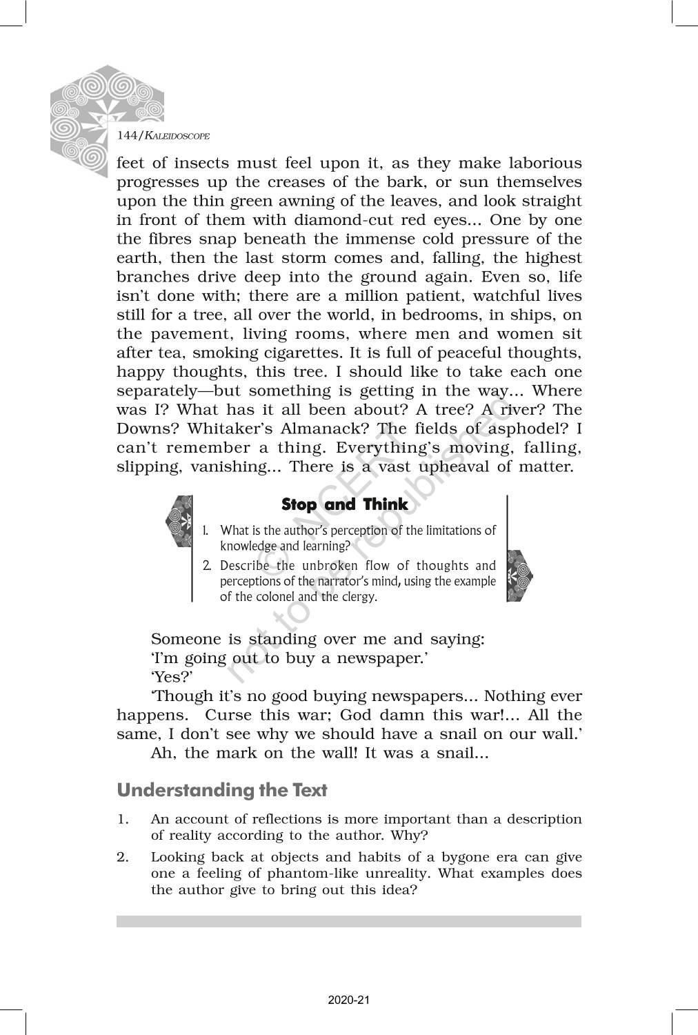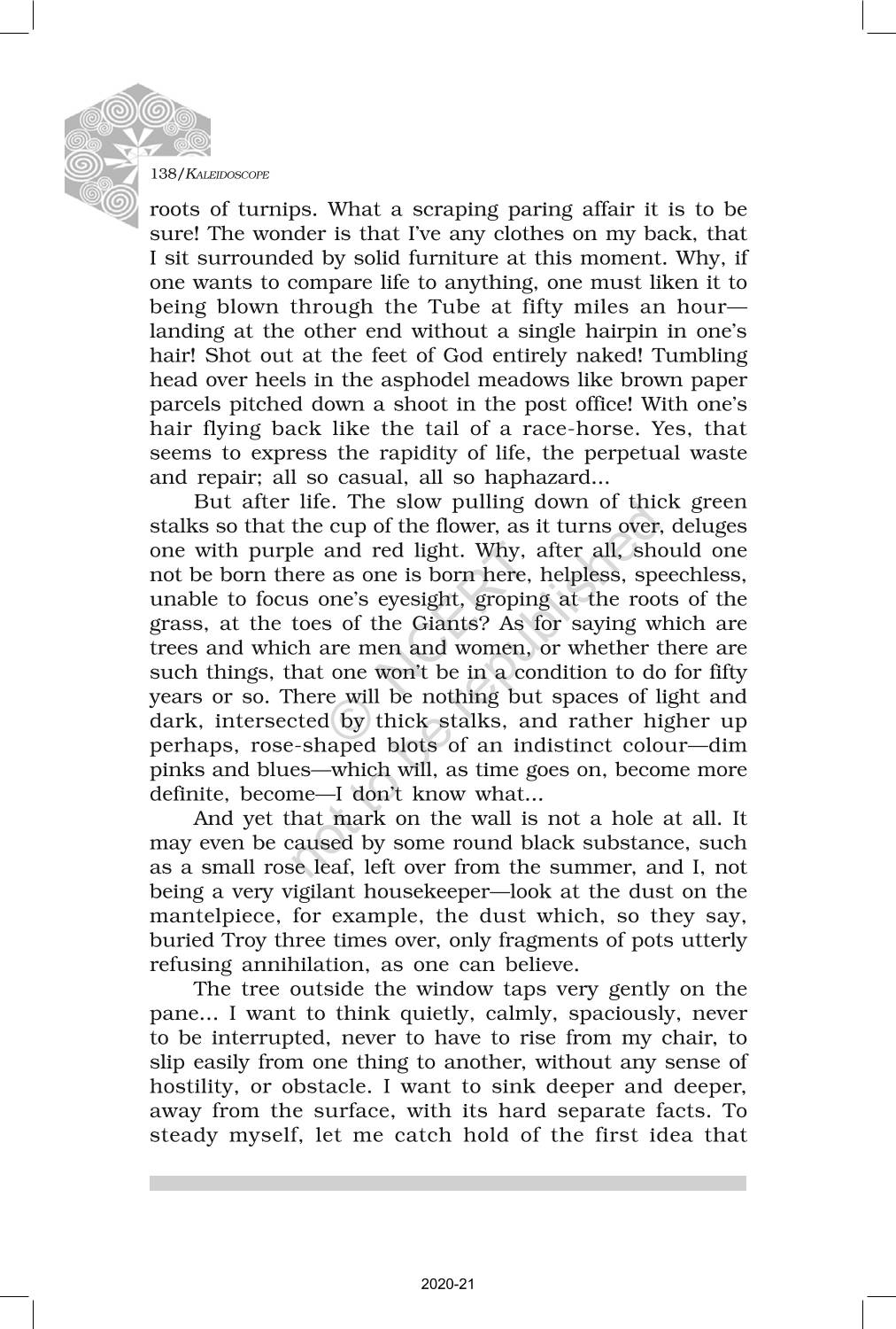 The time when students had limited options of choice for NCERT books wherein they need to go to the bookstore to buy the books but here at BeTrained.in, you can read the complete chapter-Non Fiction 2 The Mark On The Wall of NCERT books for class 12 Kaleidoscope. If CBSE class 12 students are finding it hard to search for NCERT Kaleidoscope books online, then this is the right place as we have provided the textbooks of NCERT chapter wise. These books are available on our website for free along with NCERT Solutions and Exemplar solutions.