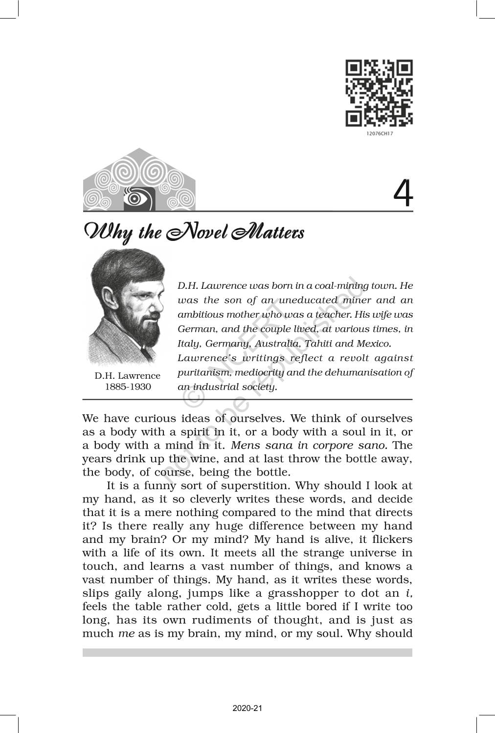 The time when students had limited options of choice for NCERT books wherein they need to go to the bookstore to buy the books but here at BeTrained.in, you can read the complete chapter-Non Fiction 4 Why The Novel Matters of NCERT books for class 12 Kaleidoscope. If CBSE class 12 students are finding it hard to search for NCERT Kaleidoscope books online, then this is the right place as we have provided the textbooks of NCERT chapter wise. These books are available on our website for free along with NCERT Solutions and Exemplar solutions.