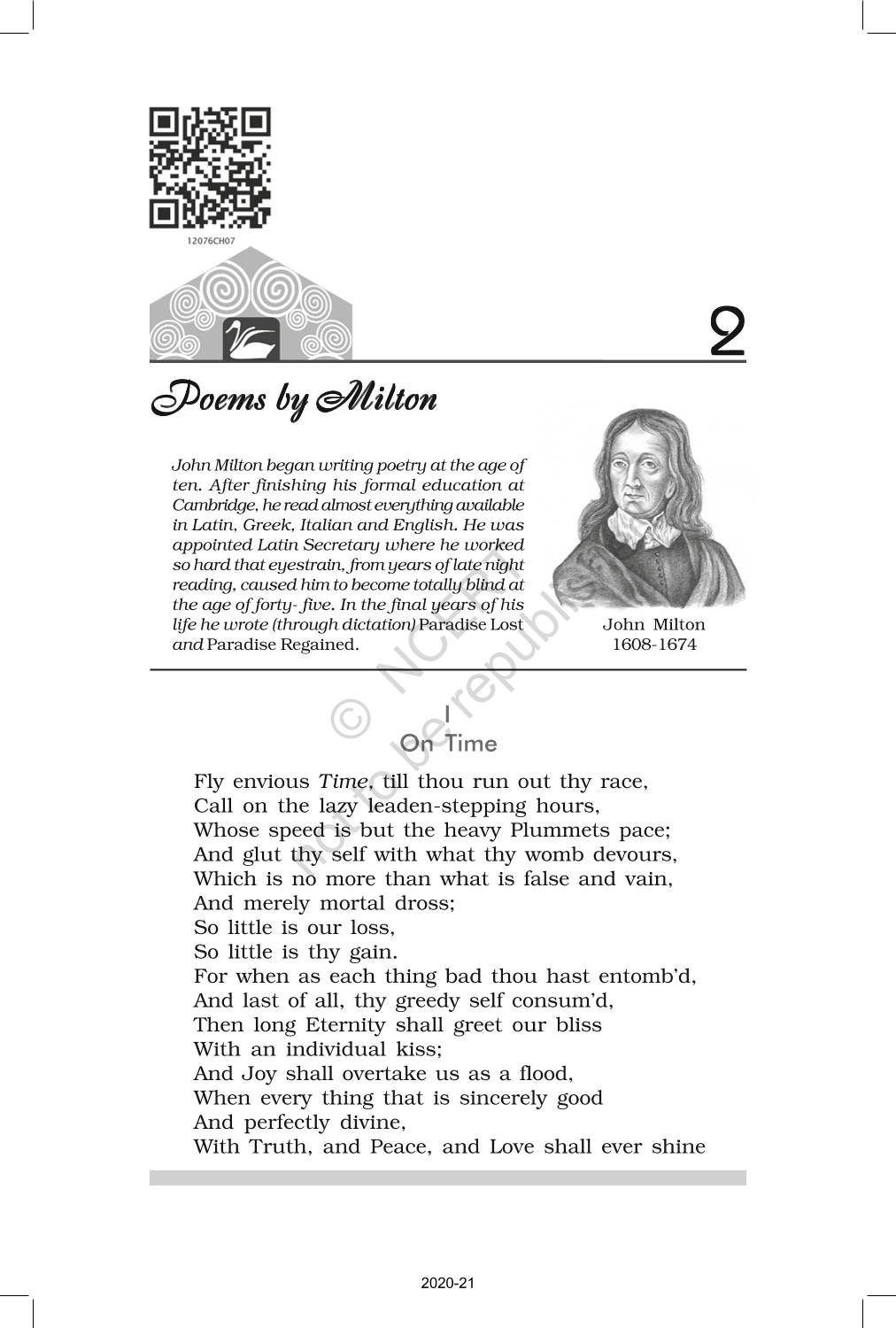 The time when students had limited options of choice for NCERT books wherein they need to go to the bookstore to buy the books but here at BeTrained.in, you can read the complete chapter-Poetry 7 Time And Time Again of NCERT books for class 12 Kaleidoscope. If CBSE class 12 students are finding it hard to search for NCERT Kaleidoscope books online, then this is the right place as we have provided the textbooks of NCERT chapter wise. These books are available on our website for free along with NCERT Solutions and Exemplar solutions.