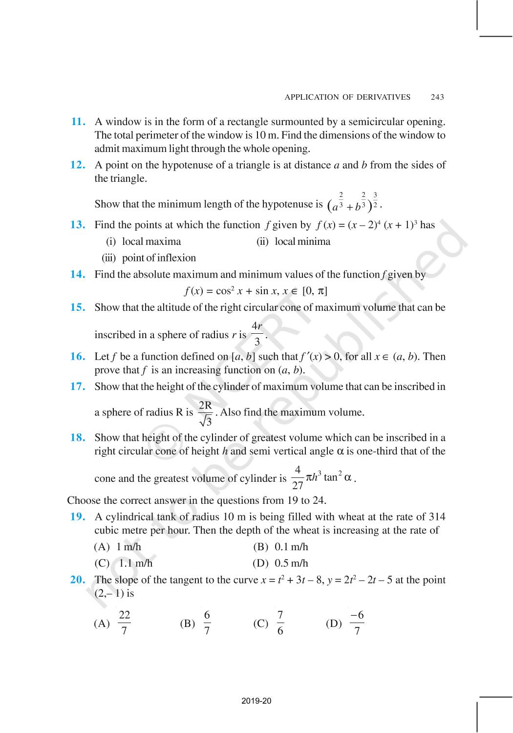 The time when students had limited options of choice for NCERT books wherein they need to go to the bookstore to buy the books but here at BeTrained.in, you can read the complete chapter-Application Of Derivatives of NCERT books for class 12 Mathematics Part I. If CBSE class 12 students are finding it hard to search for NCERT Mathematics Part I books online, then this is the right place as we have provided the textbooks of NCERT chapter wise. These books are available on our website for free along with NCERT Solutions and Exemplar solutions.