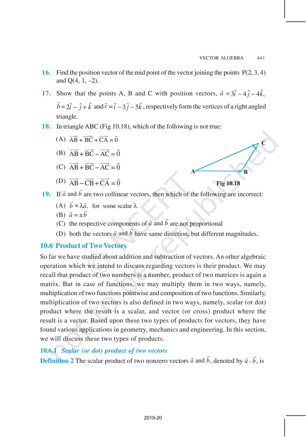 The time when students had limited options of choice for NCERT books wherein they need to go to the bookstore to buy the books but here at BeTrained.in, you can read the complete chapter-Vector Algebra of NCERT books for class 12 Mathematics Part II. If CBSE class 12 students are finding it hard to search for NCERT Mathematics Part II books online, then this is the right place as we have provided the textbooks of NCERT chapter wise. These books are available on our website for free along with NCERT Solutions and Exemplar solutions.