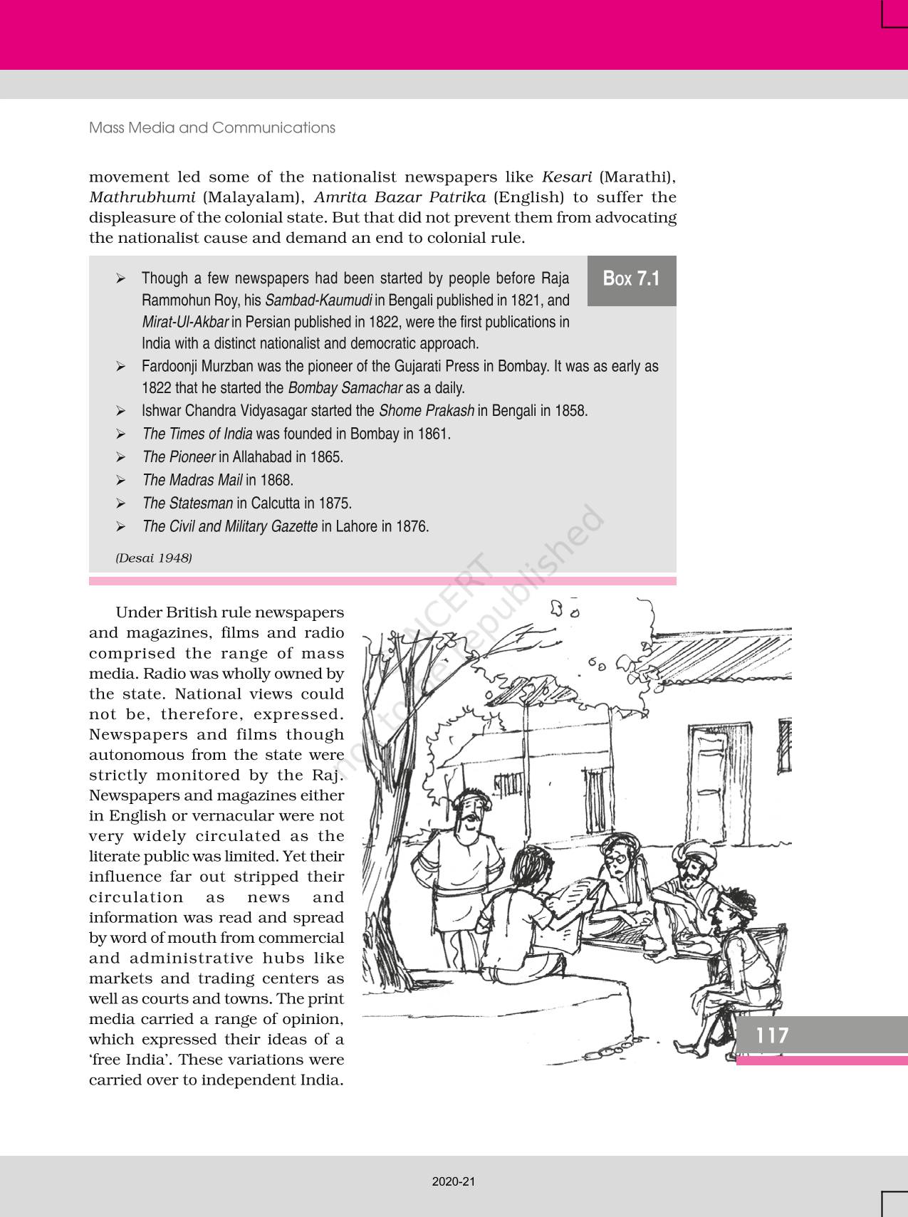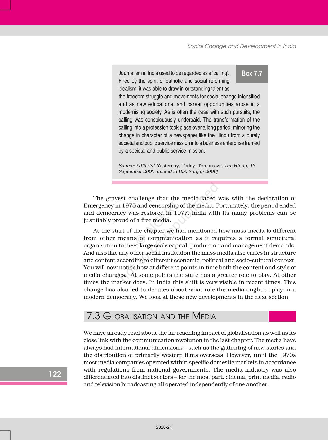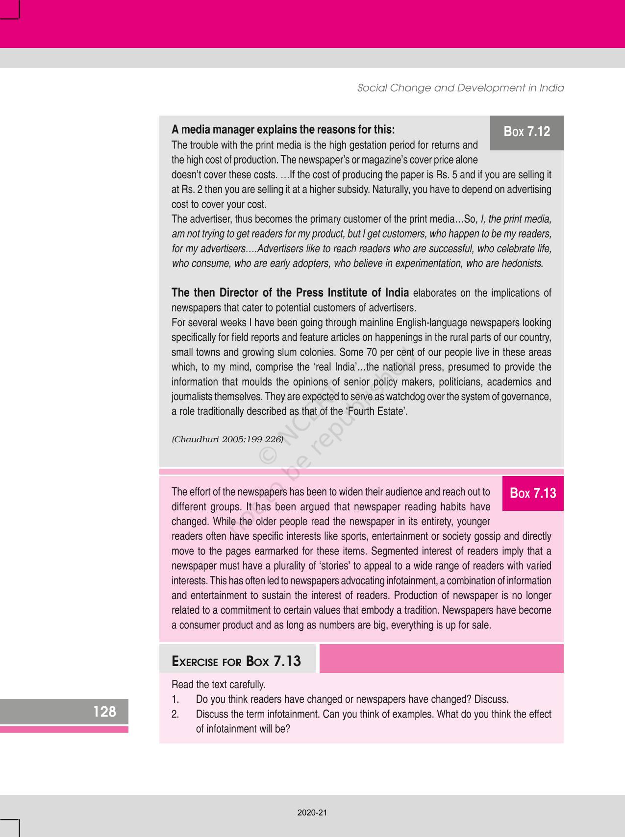 The time when students had limited options of choice for NCERT books wherein they need to go to the bookstore to buy the books but here at BeTrained.in, you can read the complete chapter-Mass Media And Communications of NCERT books for class 12 Social Change And Development In India. If CBSE class 12 students are finding it hard to search for NCERT Social Change And Development In India books online, then this is the right place as we have provided the textbooks of NCERT chapter wise. These books are available on our website for free along with NCERT Solutions and Exemplar solutions.