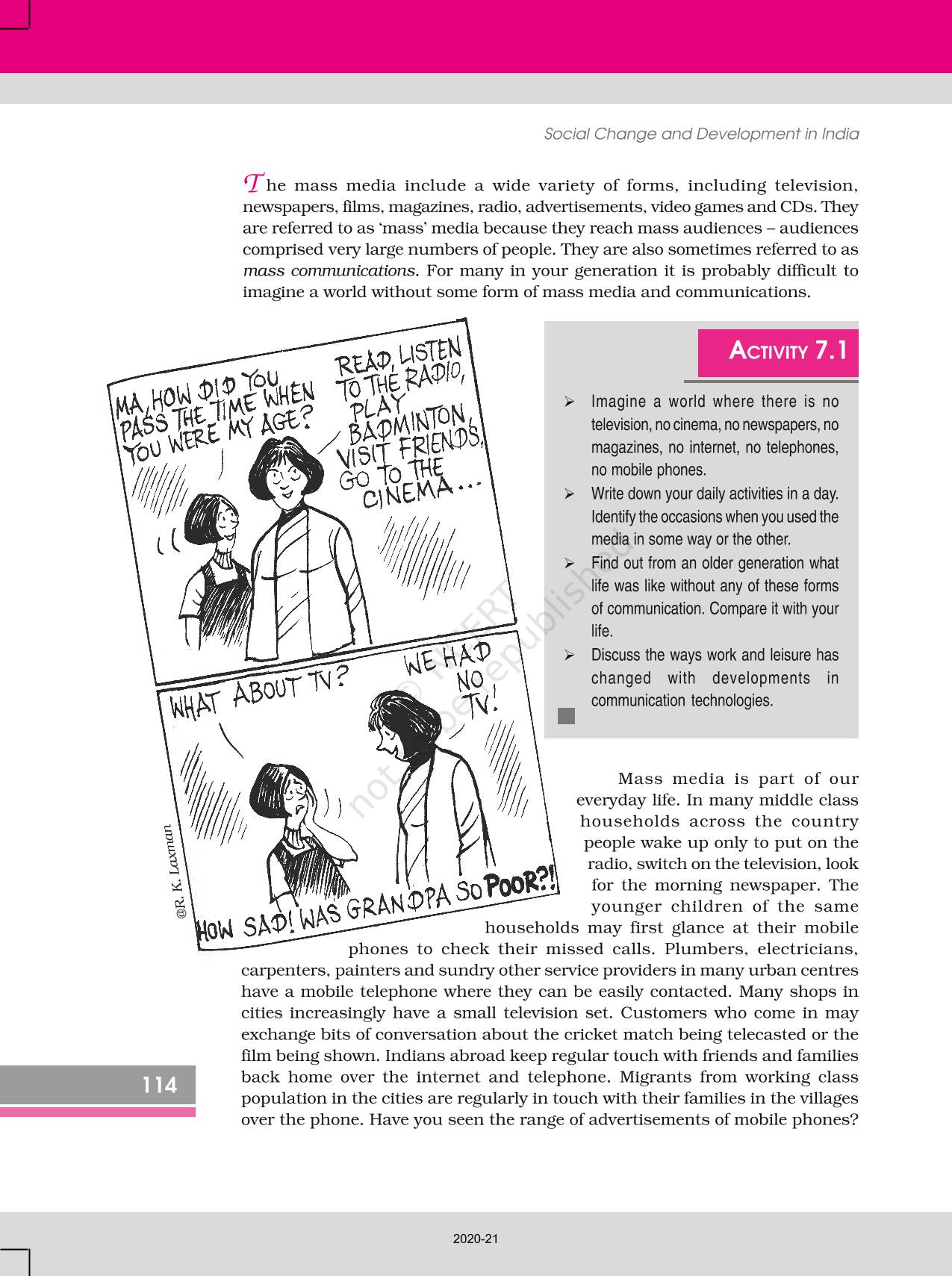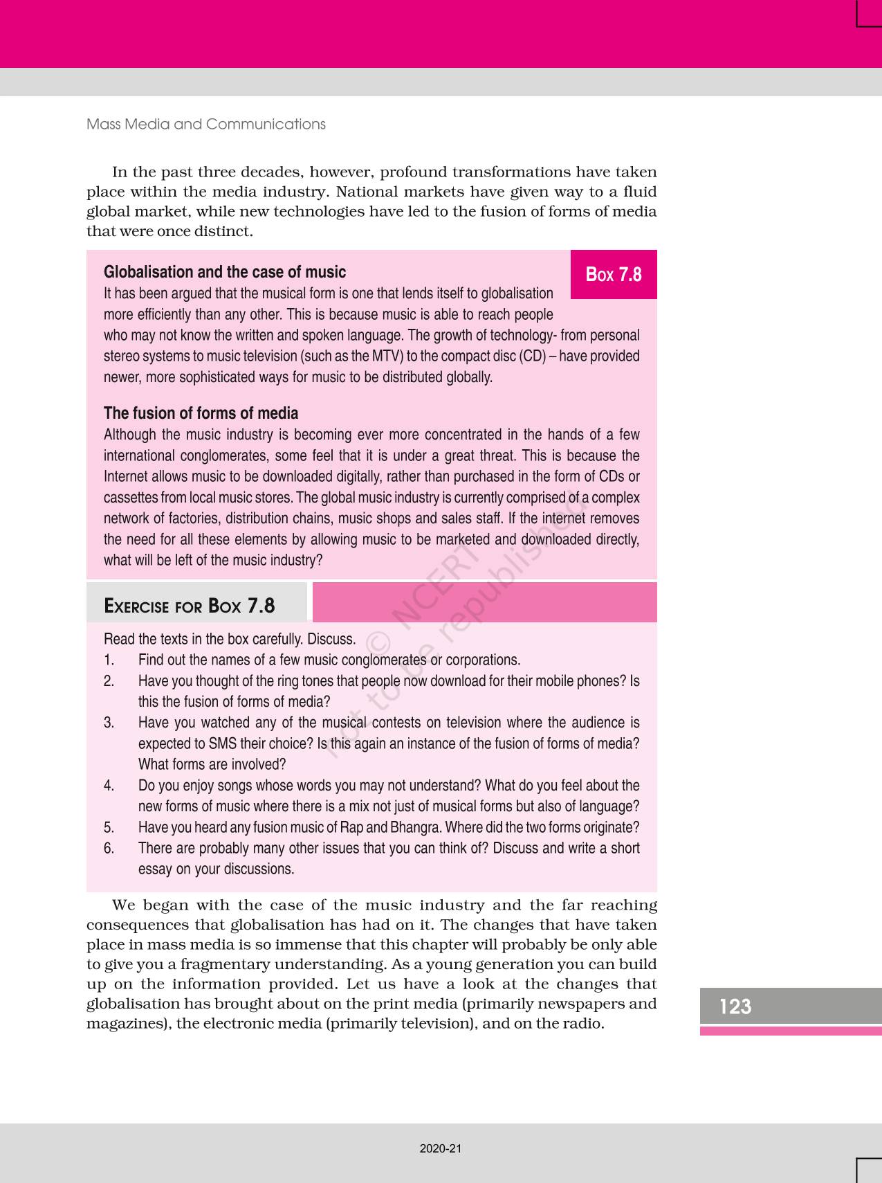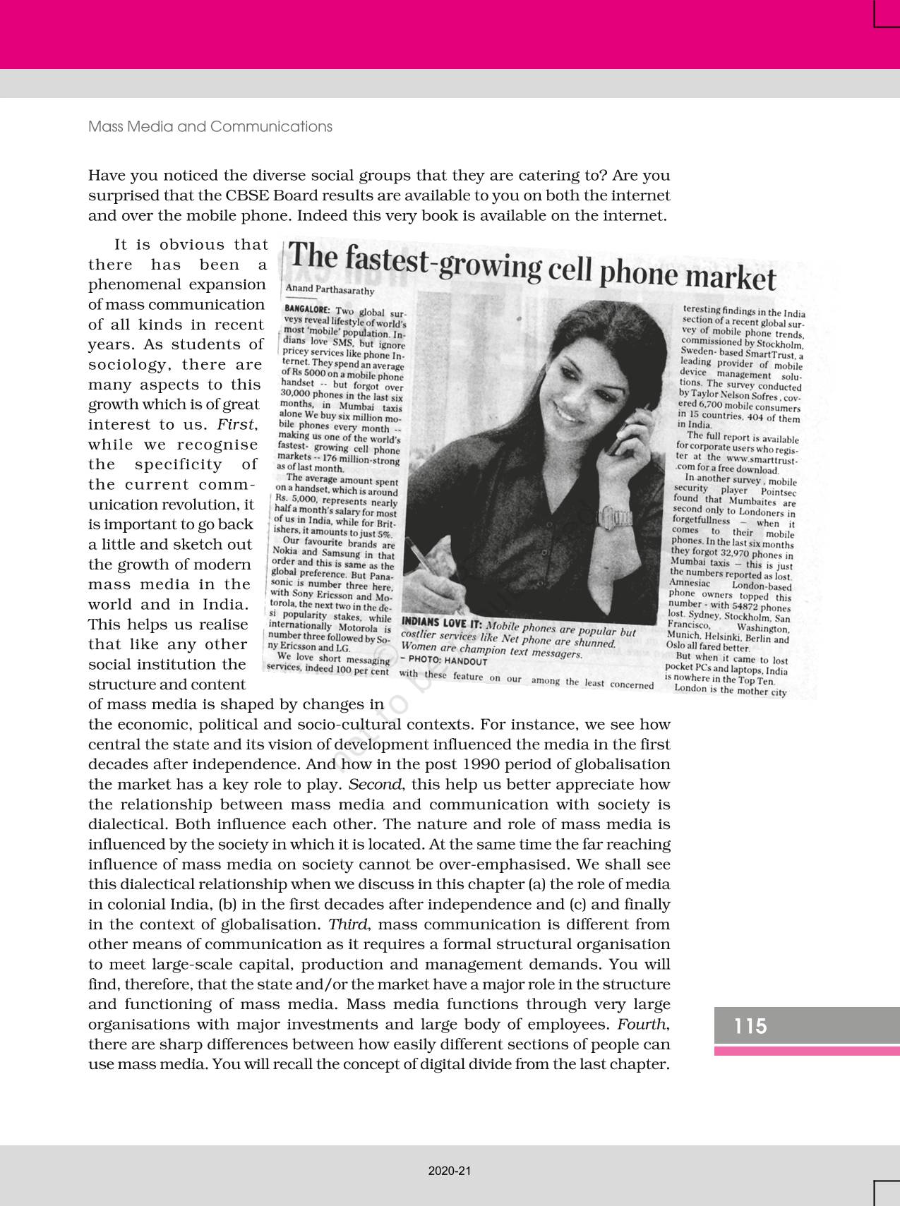 The time when students had limited options of choice for NCERT books wherein they need to go to the bookstore to buy the books but here at BeTrained.in, you can read the complete chapter-Mass Media And Communications of NCERT books for class 12 Social Change And Development In India. If CBSE class 12 students are finding it hard to search for NCERT Social Change And Development In India books online, then this is the right place as we have provided the textbooks of NCERT chapter wise. These books are available on our website for free along with NCERT Solutions and Exemplar solutions.