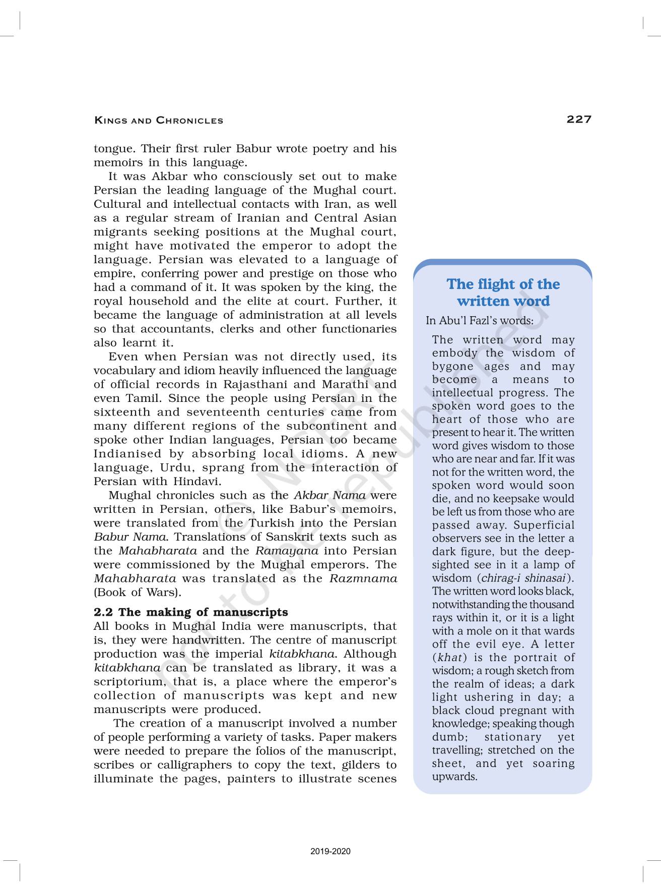 The time when students had limited options of choice for NCERT books wherein they need to go to the bookstore to buy the books but here at BeTrained.in, you can read the complete chapter-Kings And Chronicles of NCERT books for class 12 Themes In Indian History Part II. If CBSE class 12 students are finding it hard to search for NCERT Themes In Indian History Part II books online, then this is the right place as we have provided the textbooks of NCERT chapter wise. These books are available on our website for free along with NCERT Solutions and Exemplar solutions.