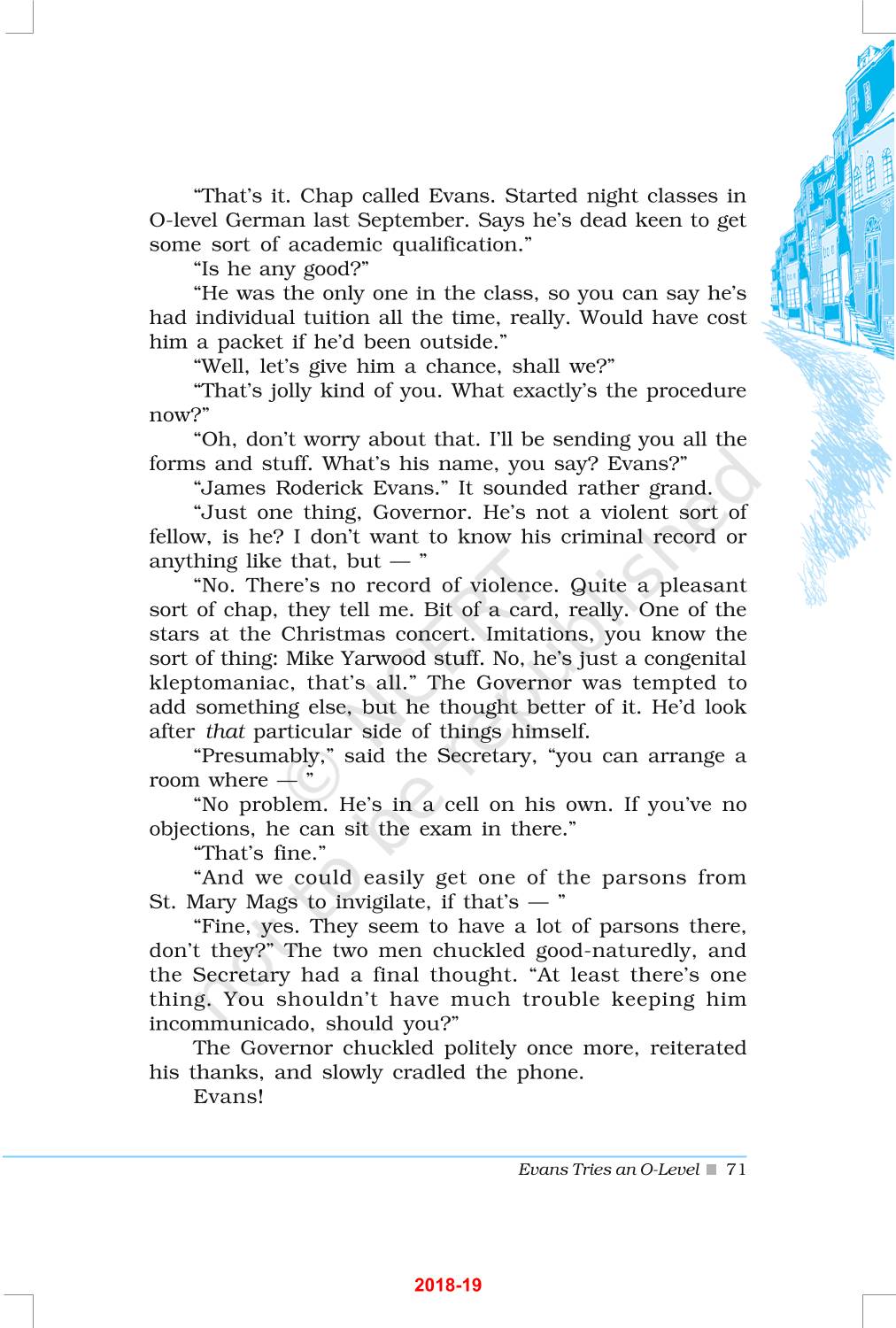 The time when students had limited options of choice for NCERT books wherein they need to go to the bookstore to buy the books but here at BeTrained.in, you can read the complete chapter-Evans Tries An O Level of NCERT books for class 12 Vistas. If CBSE class 12 students are finding it hard to search for NCERT Vistas books online, then this is the right place as we have provided the textbooks of NCERT chapter wise. These books are available on our website for free along with NCERT Solutions and Exemplar solutions.