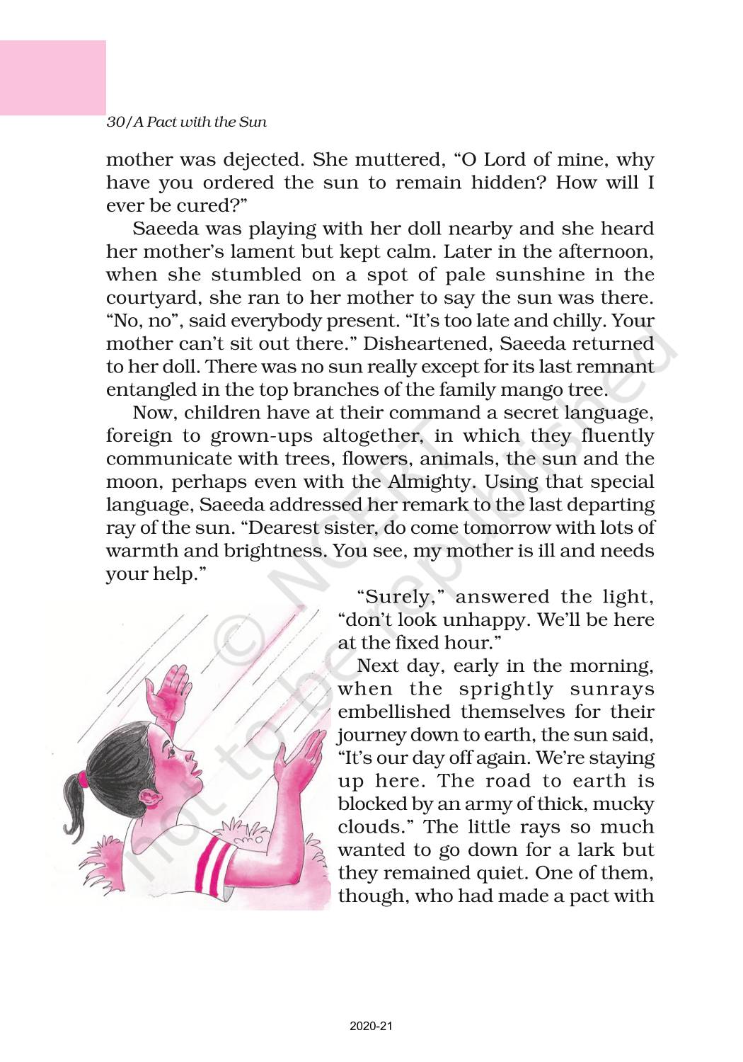 The time when students had limited options of choice for NCERT books wherein they need to go to the bookstore to buy the books but here at BeTrained.in, you can read the complete chapter-A Pact With The Sun of NCERT books for class 6 English A Pact With The Sun. If CBSE class 6 students are finding it hard to search for NCERT English A Pact With The Sun books online, then this is the right place as we have provided the textbooks of NCERT chapter wise. These books are available on our website for free along with NCERT Solutions and Exemplar solutions.