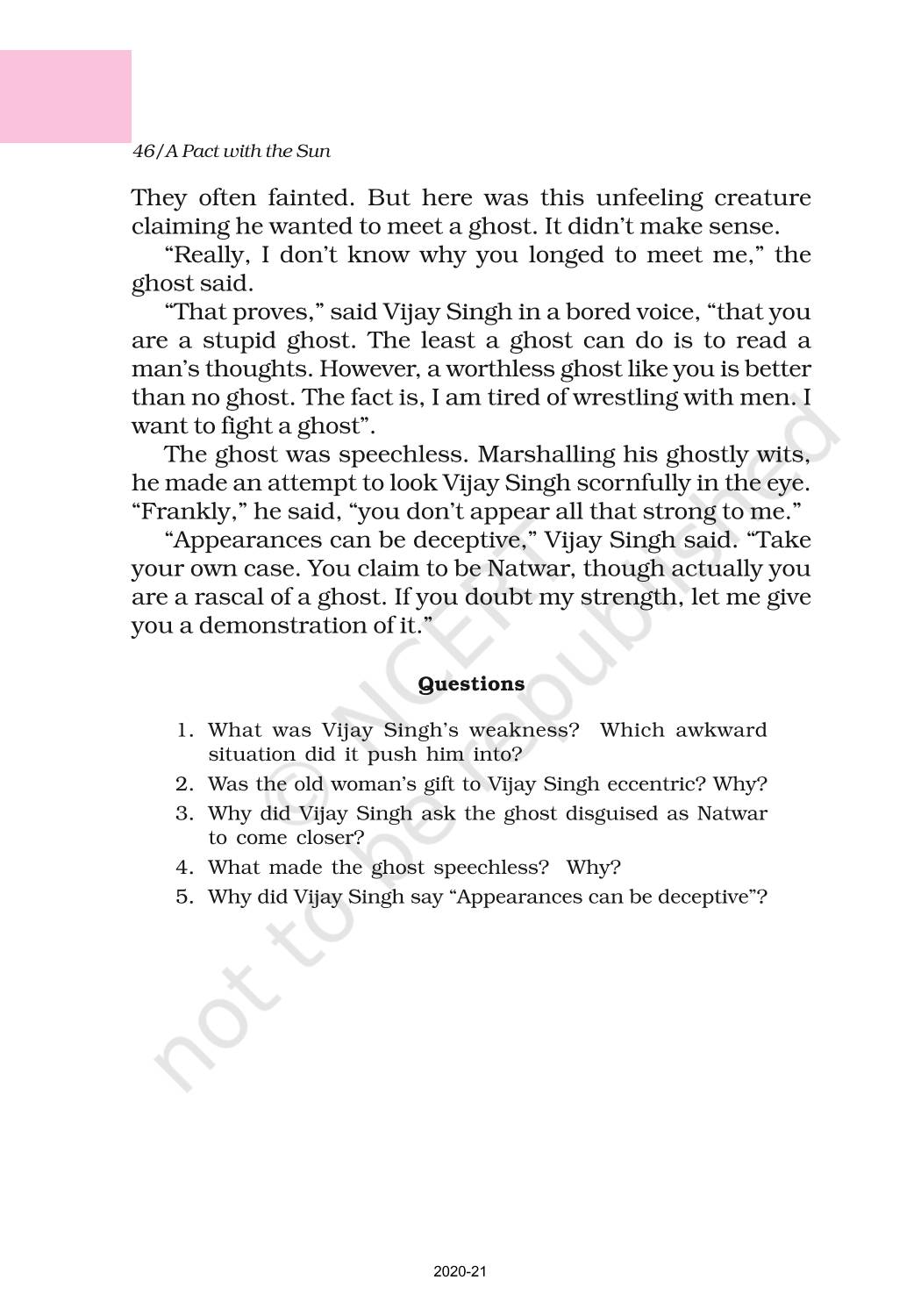 The time when students had limited options of choice for NCERT books wherein they need to go to the bookstore to buy the books but here at BeTrained.in, you can read the complete chapter-A Strange Wrestling Match of NCERT books for class 6 English A Pact With The Sun. If CBSE class 6 students are finding it hard to search for NCERT English A Pact With The Sun books online, then this is the right place as we have provided the textbooks of NCERT chapter wise. These books are available on our website for free along with NCERT Solutions and Exemplar solutions.