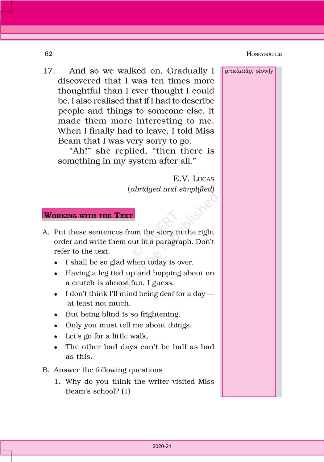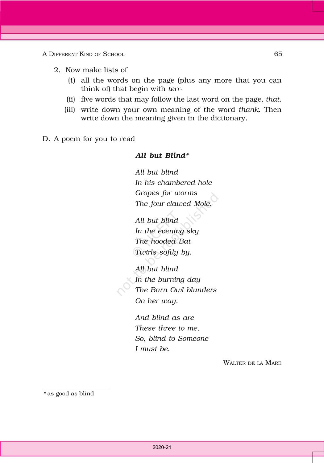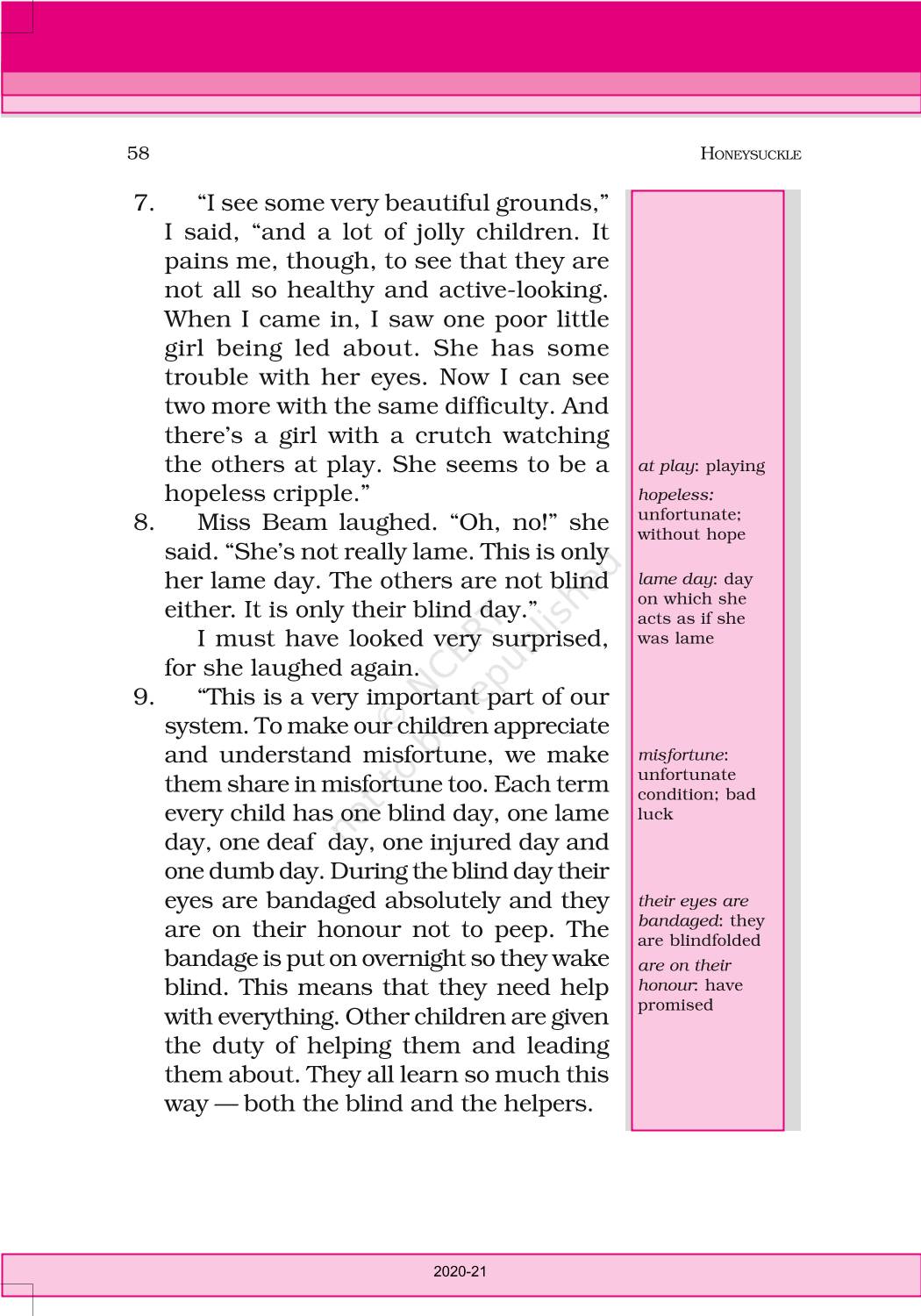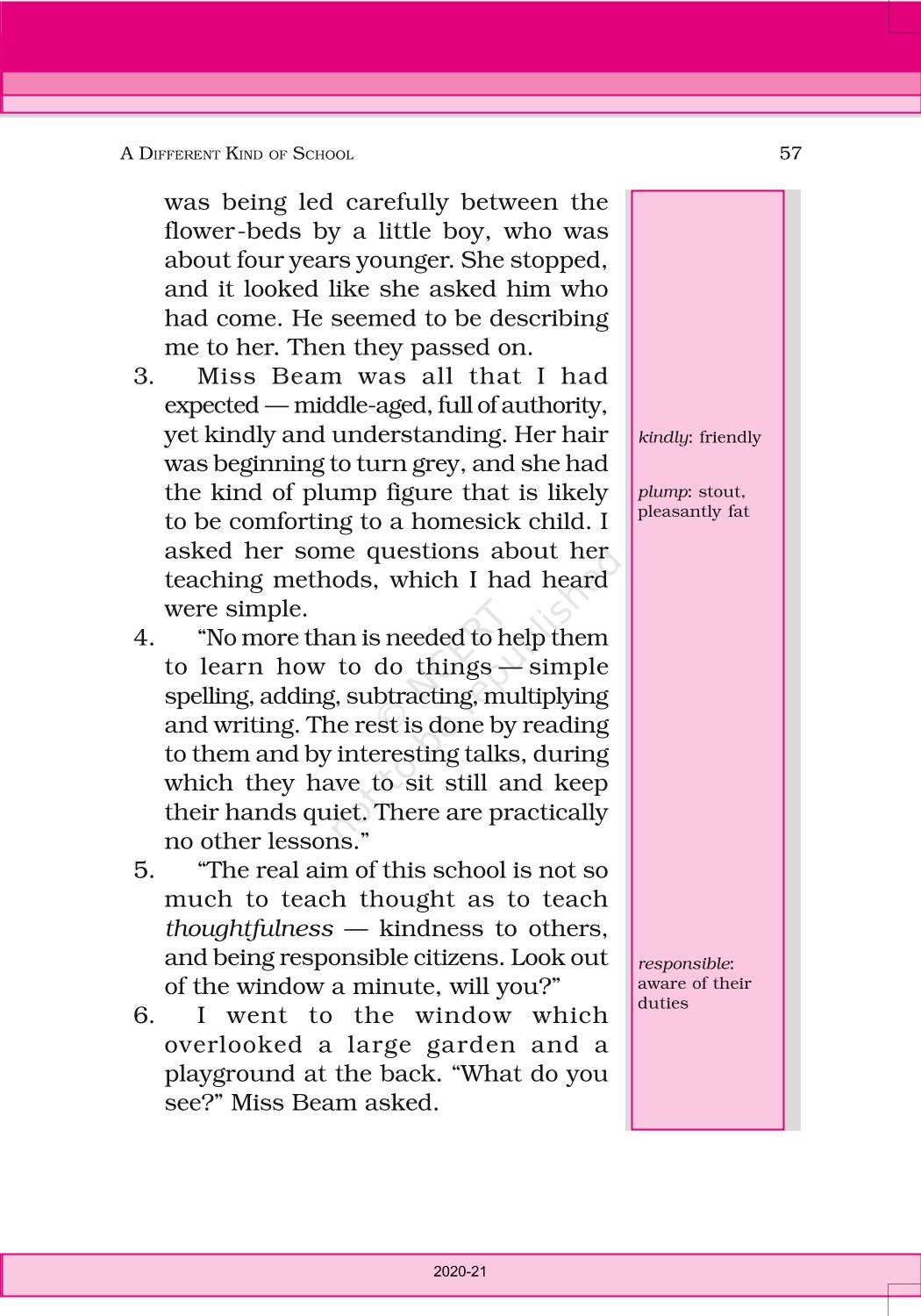 The time when students had limited options of choice for NCERT books wherein they need to go to the bookstore to buy the books but here at BeTrained.in, you can read the complete chapter-A Different Kind Of School of NCERT books for class 6 English Honeysuckle. If CBSE class 6 students are finding it hard to search for NCERT English Honeysuckle books online, then this is the right place as we have provided the textbooks of NCERT chapter wise. These books are available on our website for free along with NCERT Solutions and Exemplar solutions.