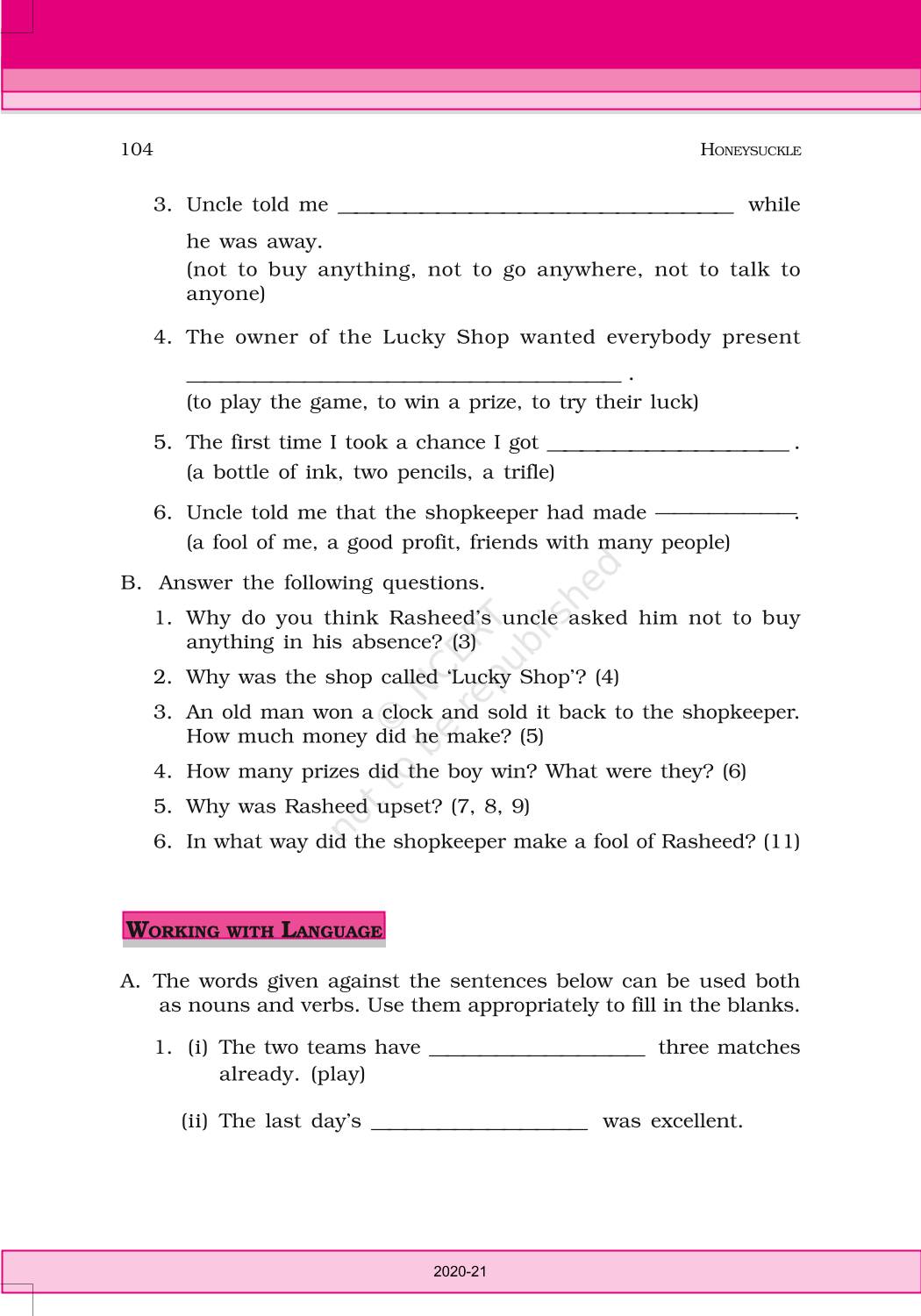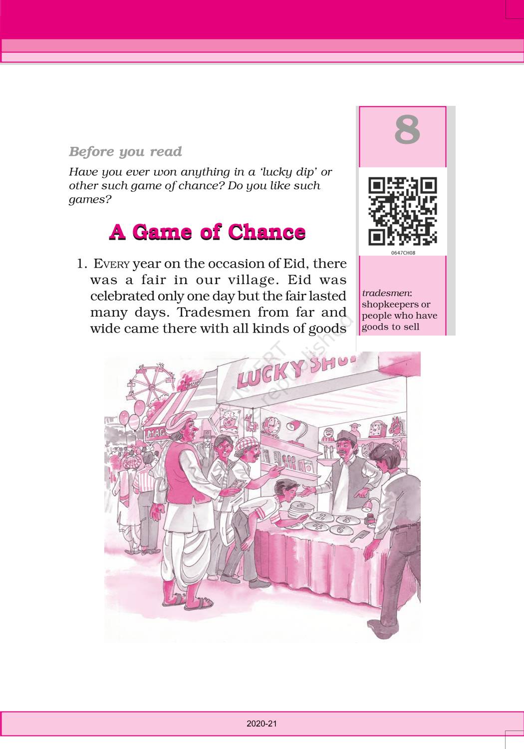 The time when students had limited options of choice for NCERT books wherein they need to go to the bookstore to buy the books but here at BeTrained.in, you can read the complete chapter-A Game Of Chance of NCERT books for class 6 English Honeysuckle. If CBSE class 6 students are finding it hard to search for NCERT English Honeysuckle books online, then this is the right place as we have provided the textbooks of NCERT chapter wise. These books are available on our website for free along with NCERT Solutions and Exemplar solutions.