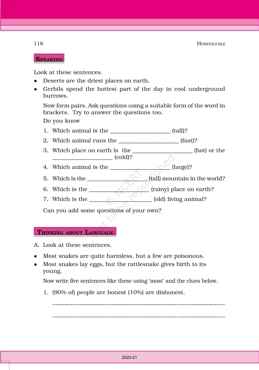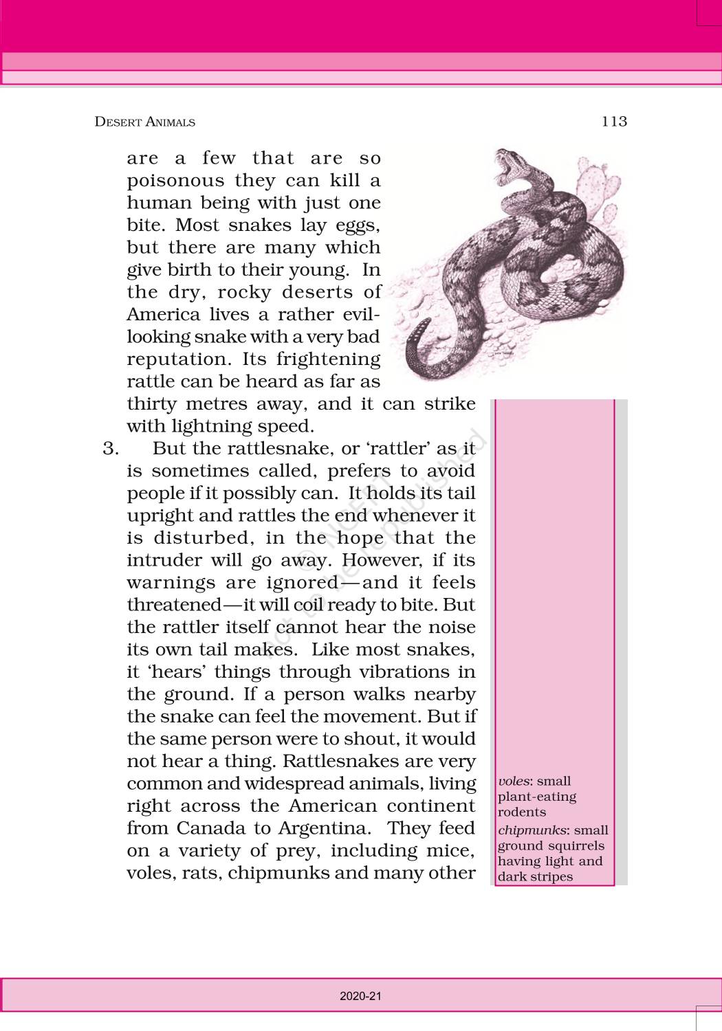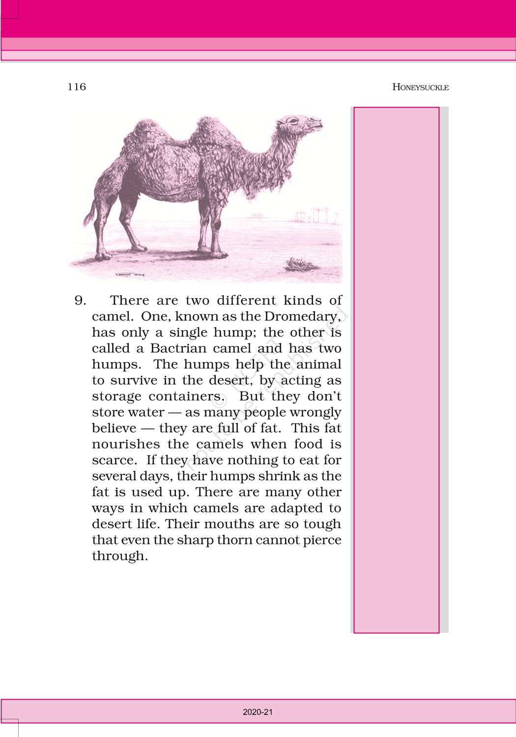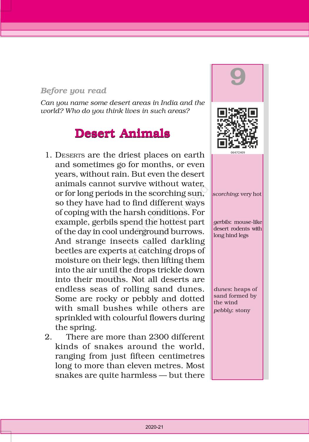 The time when students had limited options of choice for NCERT books wherein they need to go to the bookstore to buy the books but here at BeTrained.in, you can read the complete chapter-Desert Animals of NCERT books for class 6 English Honeysuckle. If CBSE class 6 students are finding it hard to search for NCERT English Honeysuckle books online, then this is the right place as we have provided the textbooks of NCERT chapter wise. These books are available on our website for free along with NCERT Solutions and Exemplar solutions.