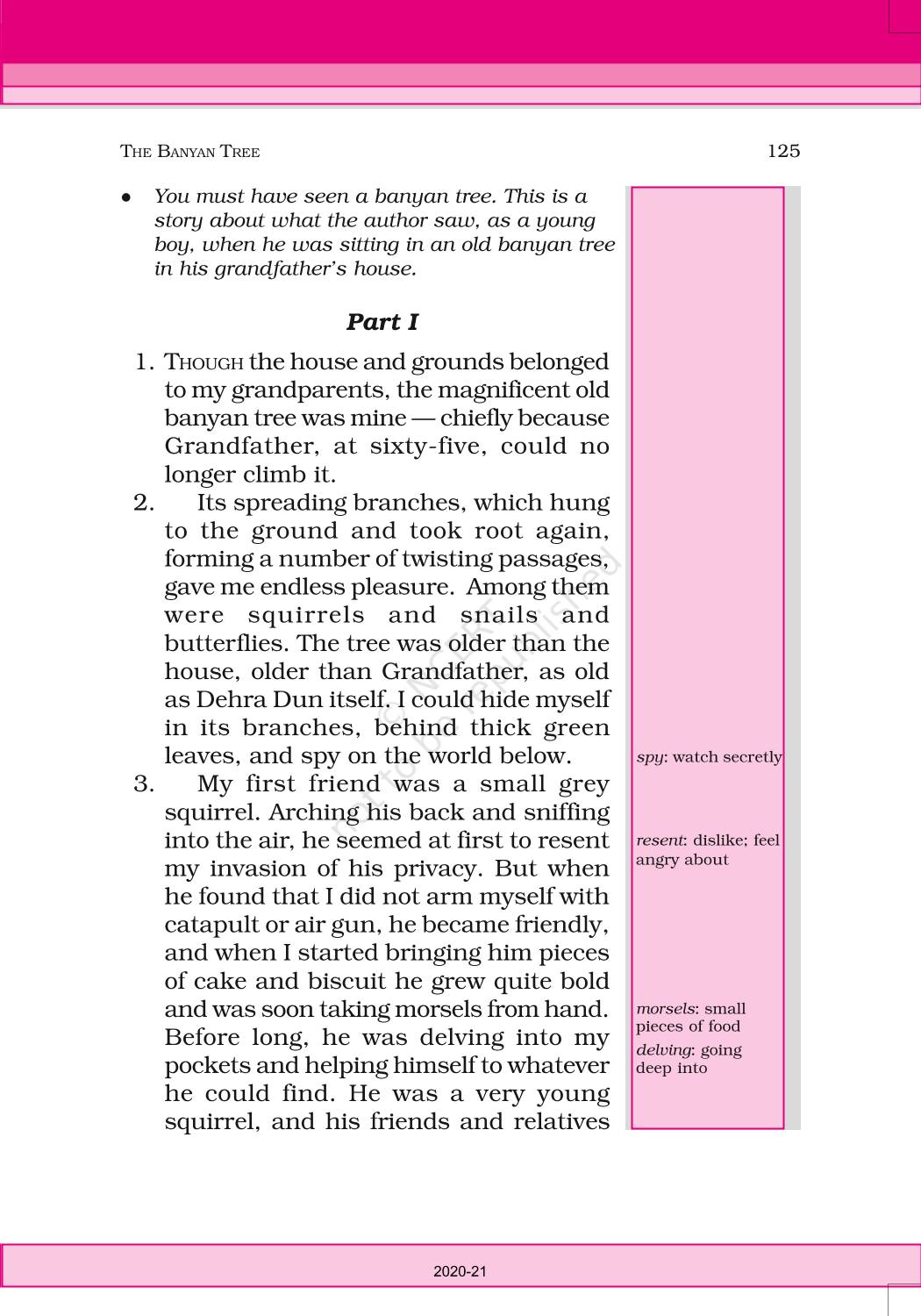 The time when students had limited options of choice for NCERT books wherein they need to go to the bookstore to buy the books but here at BeTrained.in, you can read the complete chapter-The Banyan Tree of NCERT books for class 6 English Honeysuckle. If CBSE class 6 students are finding it hard to search for NCERT English Honeysuckle books online, then this is the right place as we have provided the textbooks of NCERT chapter wise. These books are available on our website for free along with NCERT Solutions and Exemplar solutions.