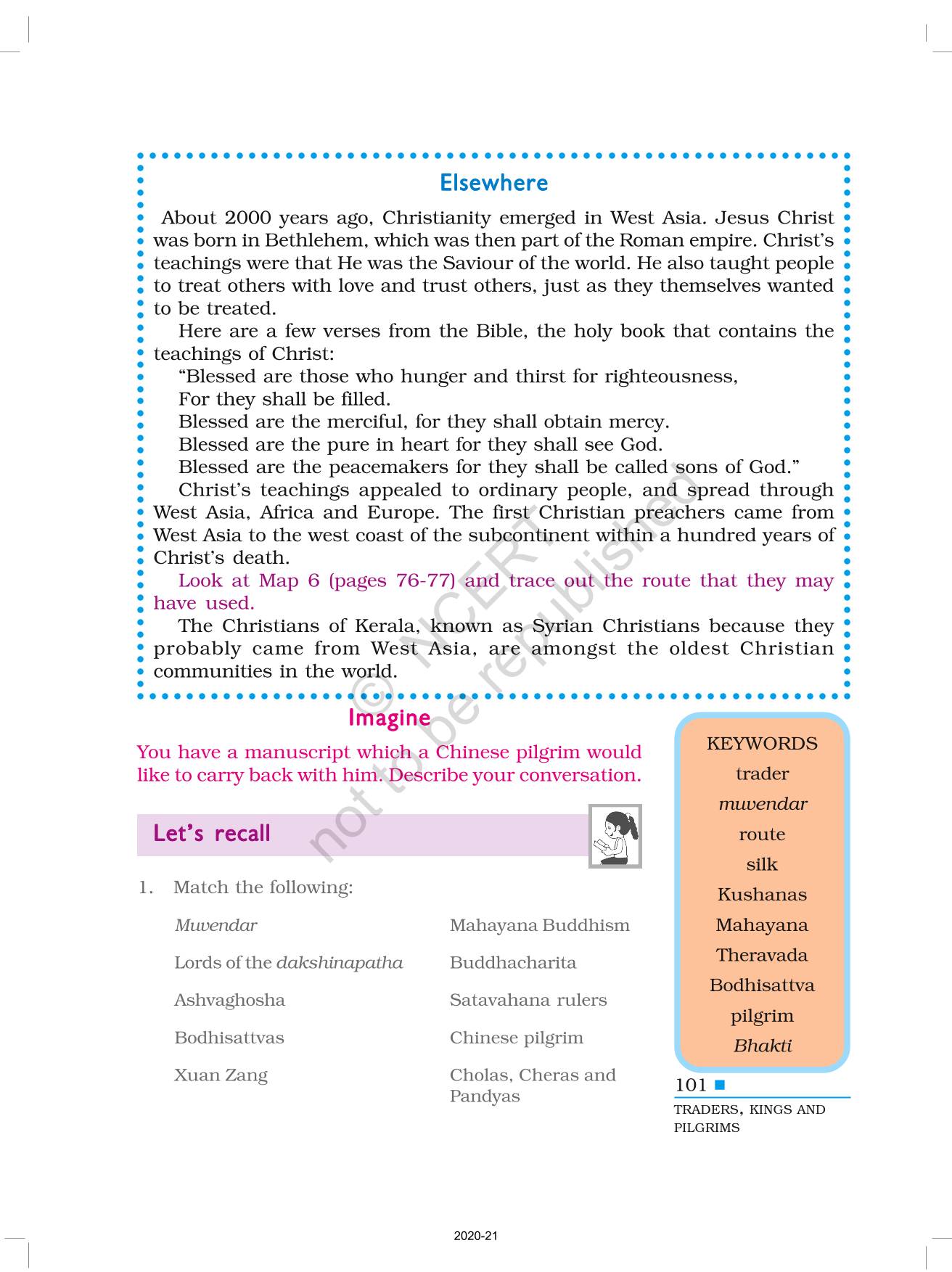 The time when students had limited options of choice for NCERT books wherein they need to go to the bookstore to buy the books but here at BeTrained.in, you can read the complete chapter-Traders Kings And Pilgrims of NCERT books for class 6 History Our Pasts I. If CBSE class 6 students are finding it hard to search for NCERT History Our Pasts I books online, then this is the right place as we have provided the textbooks of NCERT chapter wise. These books are available on our website for free along with NCERT Solutions and Exemplar solutions.