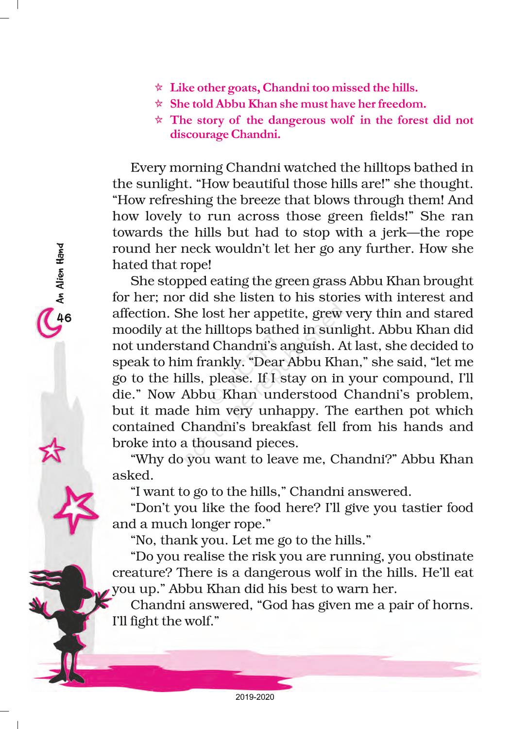 The time when students had limited options of choice for NCERT books wherein they need to go to the bookstore to buy the books but here at BeTrained.in, you can read the complete chapter-Chandni of NCERT books for class 7 English An Alien Hand. If CBSE class 7 students are finding it hard to search for NCERT English An Alien Hand books online, then this is the right place as we have provided the textbooks of NCERT chapter wise. These books are available on our website for free along with NCERT Solutions and Exemplar solutions.