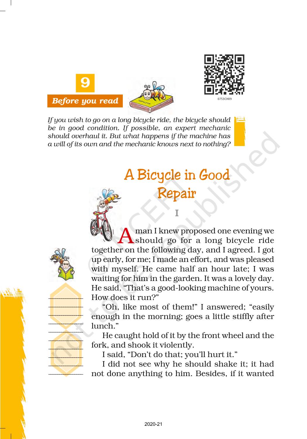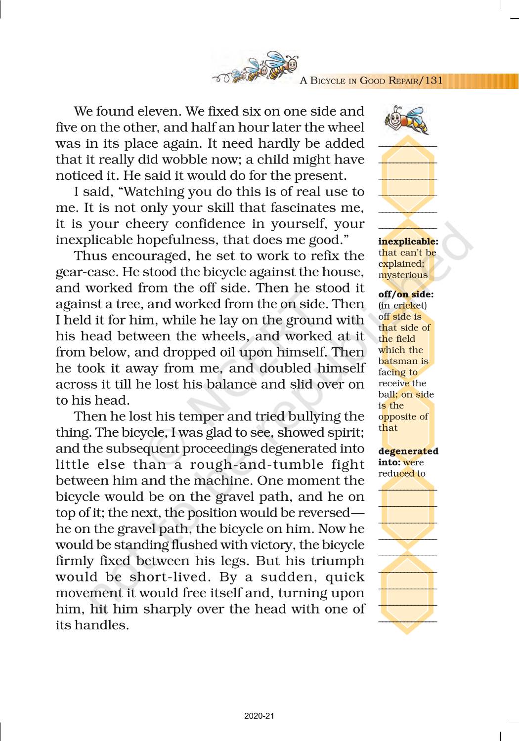 The time when students had limited options of choice for NCERT books wherein they need to go to the bookstore to buy the books but here at BeTrained.in, you can read the complete chapter-A Bicycle In Good Repair of NCERT books for class 7 English Honeycomb. If CBSE class 7 students are finding it hard to search for NCERT English Honeycomb books online, then this is the right place as we have provided the textbooks of NCERT chapter wise. These books are available on our website for free along with NCERT Solutions and Exemplar solutions.