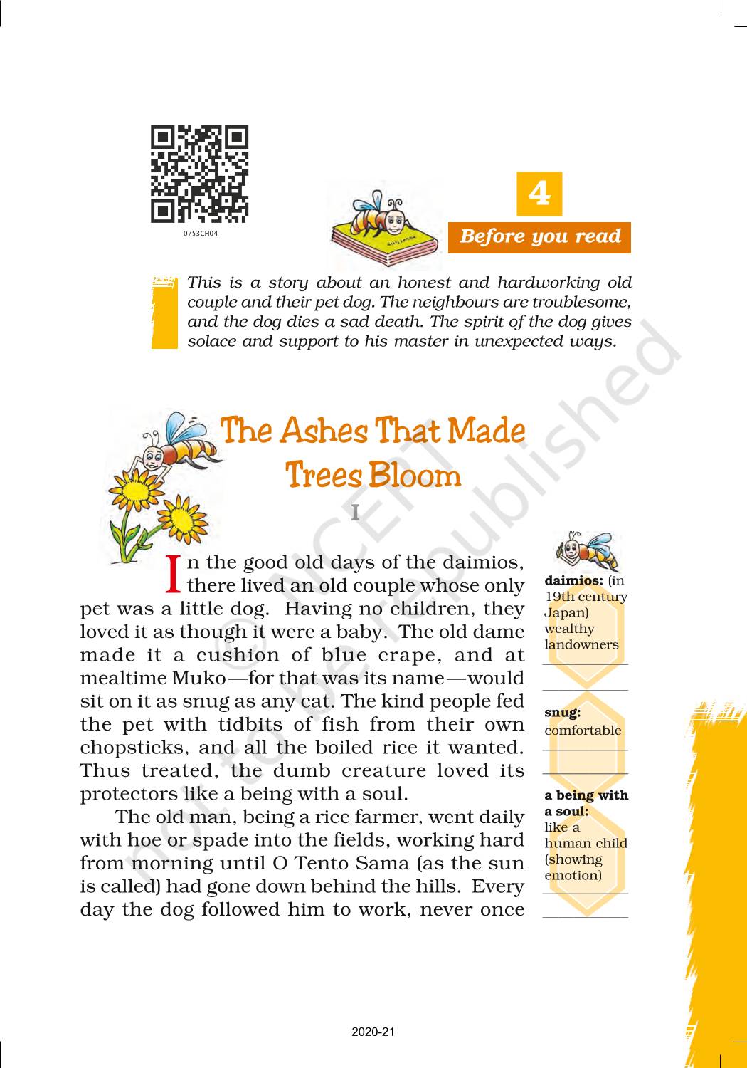 The time when students had limited options of choice for NCERT books wherein they need to go to the bookstore to buy the books but here at BeTrained.in, you can read the complete chapter-The Ashes That Made Trees Bloom of NCERT books for class 7 English Honeycomb. If CBSE class 7 students are finding it hard to search for NCERT English Honeycomb books online, then this is the right place as we have provided the textbooks of NCERT chapter wise. These books are available on our website for free along with NCERT Solutions and Exemplar solutions.