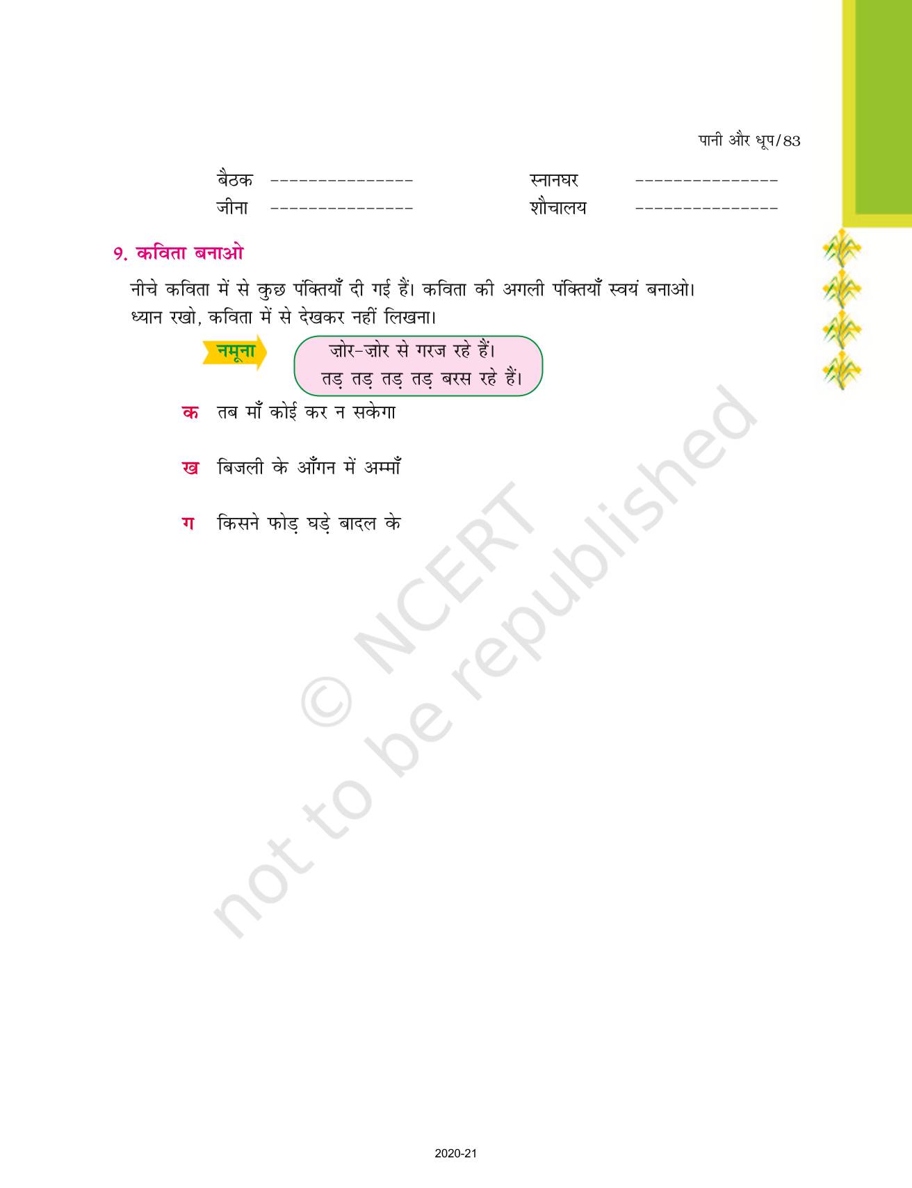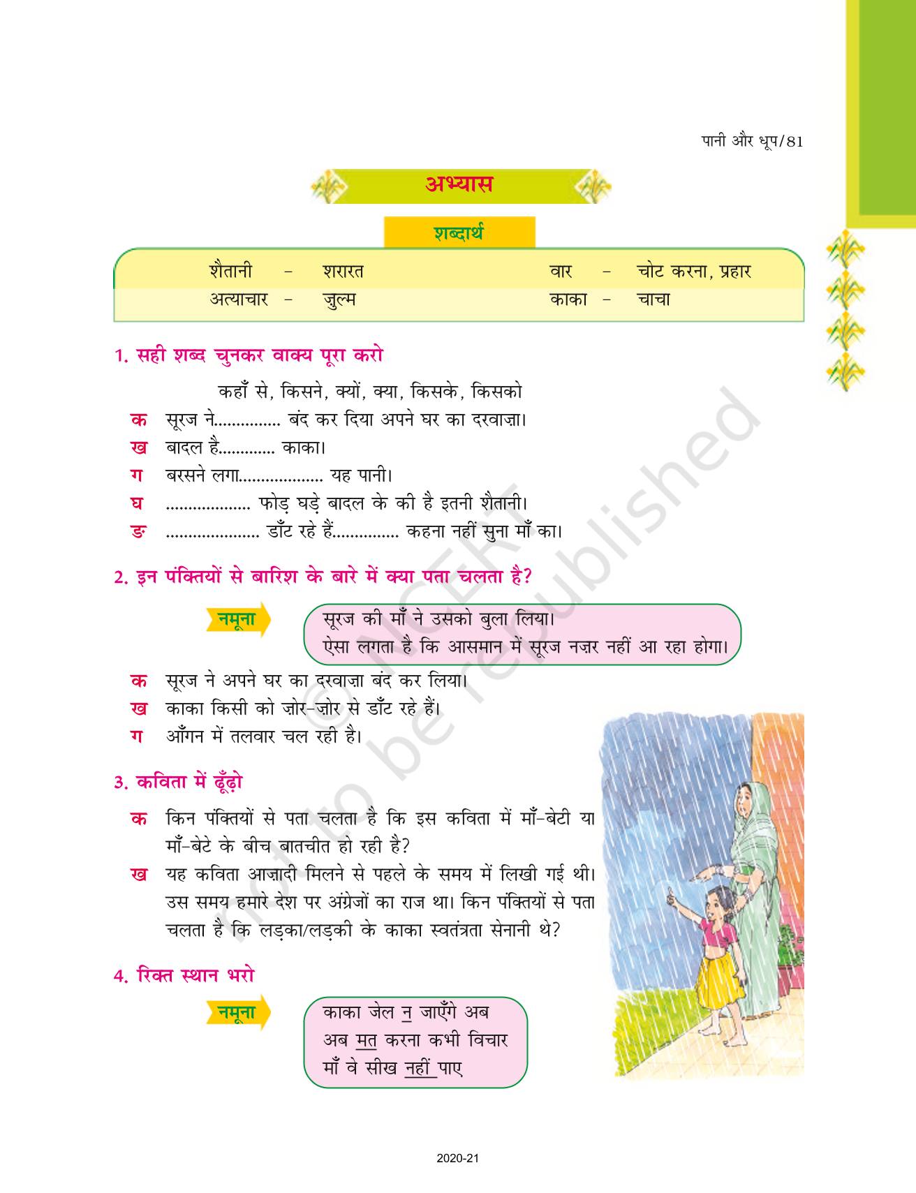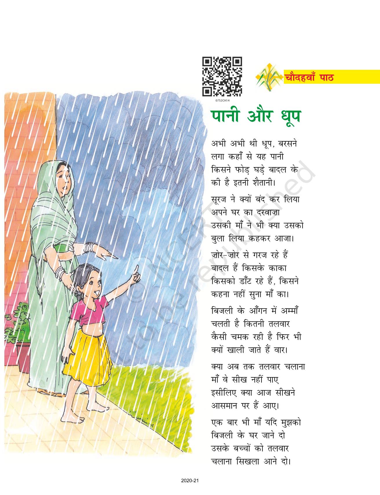 The time when students had limited options of choice for NCERT books wherein they need to go to the bookstore to buy the books but here at BeTrained.in, you can read the complete chapter-Paani Aur Dhoop of NCERT books for class 7 Hindi Durva Part 2. If CBSE class 7 students are finding it hard to search for NCERT Hindi Durva Part 2 books online, then this is the right place as we have provided the textbooks of NCERT chapter wise. These books are available on our website for free along with NCERT Solutions and Exemplar solutions.