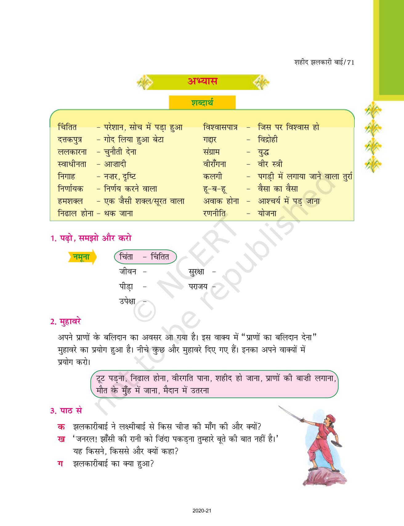 The time when students had limited options of choice for NCERT books wherein they need to go to the bookstore to buy the books but here at BeTrained.in, you can read the complete chapter-Shaheed Jhalkaribaai of NCERT books for class 7 Hindi Durva Part 2. If CBSE class 7 students are finding it hard to search for NCERT Hindi Durva Part 2 books online, then this is the right place as we have provided the textbooks of NCERT chapter wise. These books are available on our website for free along with NCERT Solutions and Exemplar solutions.