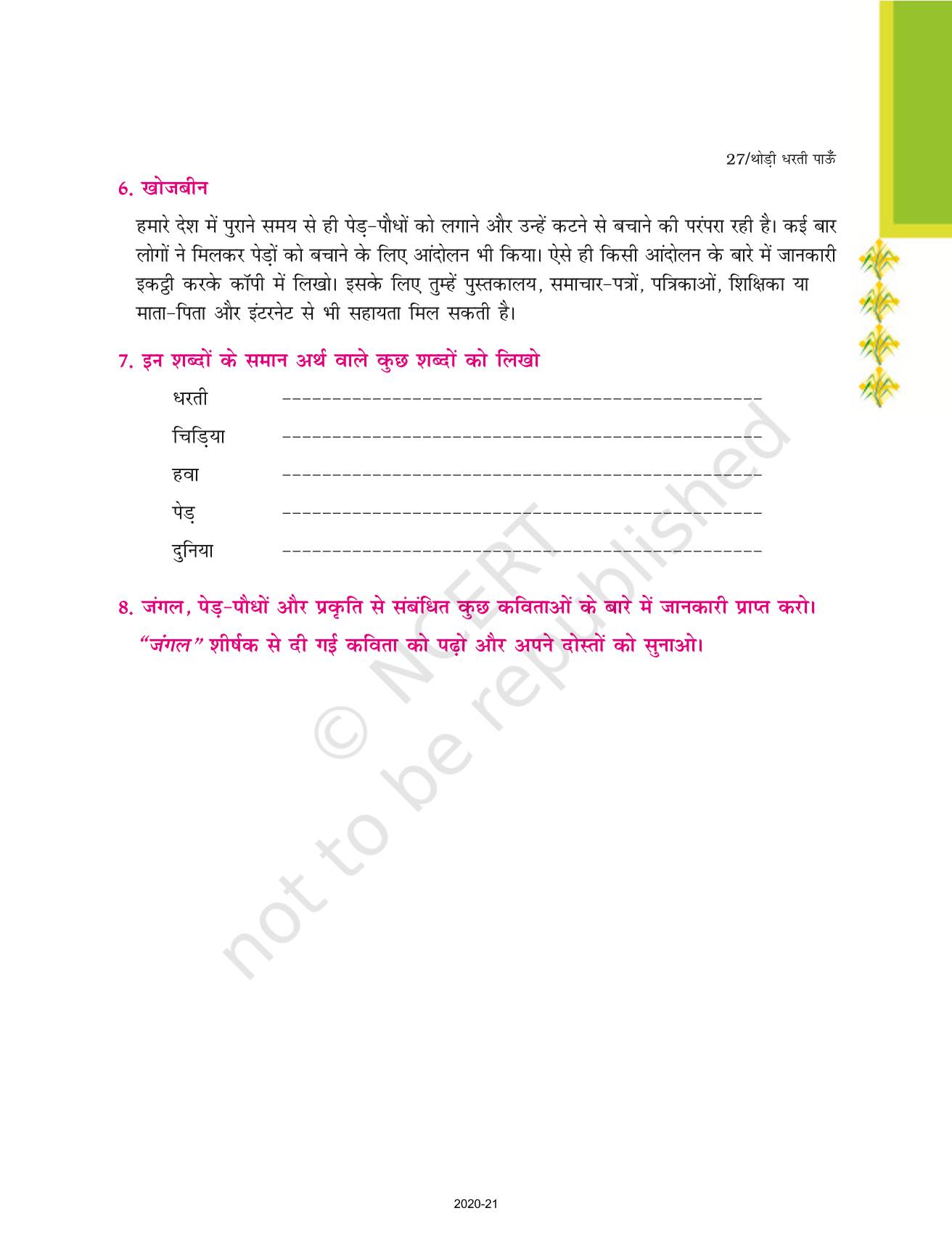 The time when students had limited options of choice for NCERT books wherein they need to go to the bookstore to buy the books but here at BeTrained.in, you can read the complete chapter-Thodi Dharti Pau of NCERT books for class 7 Hindi Durva Part 2. If CBSE class 7 students are finding it hard to search for NCERT Hindi Durva Part 2 books online, then this is the right place as we have provided the textbooks of NCERT chapter wise. These books are available on our website for free along with NCERT Solutions and Exemplar solutions.