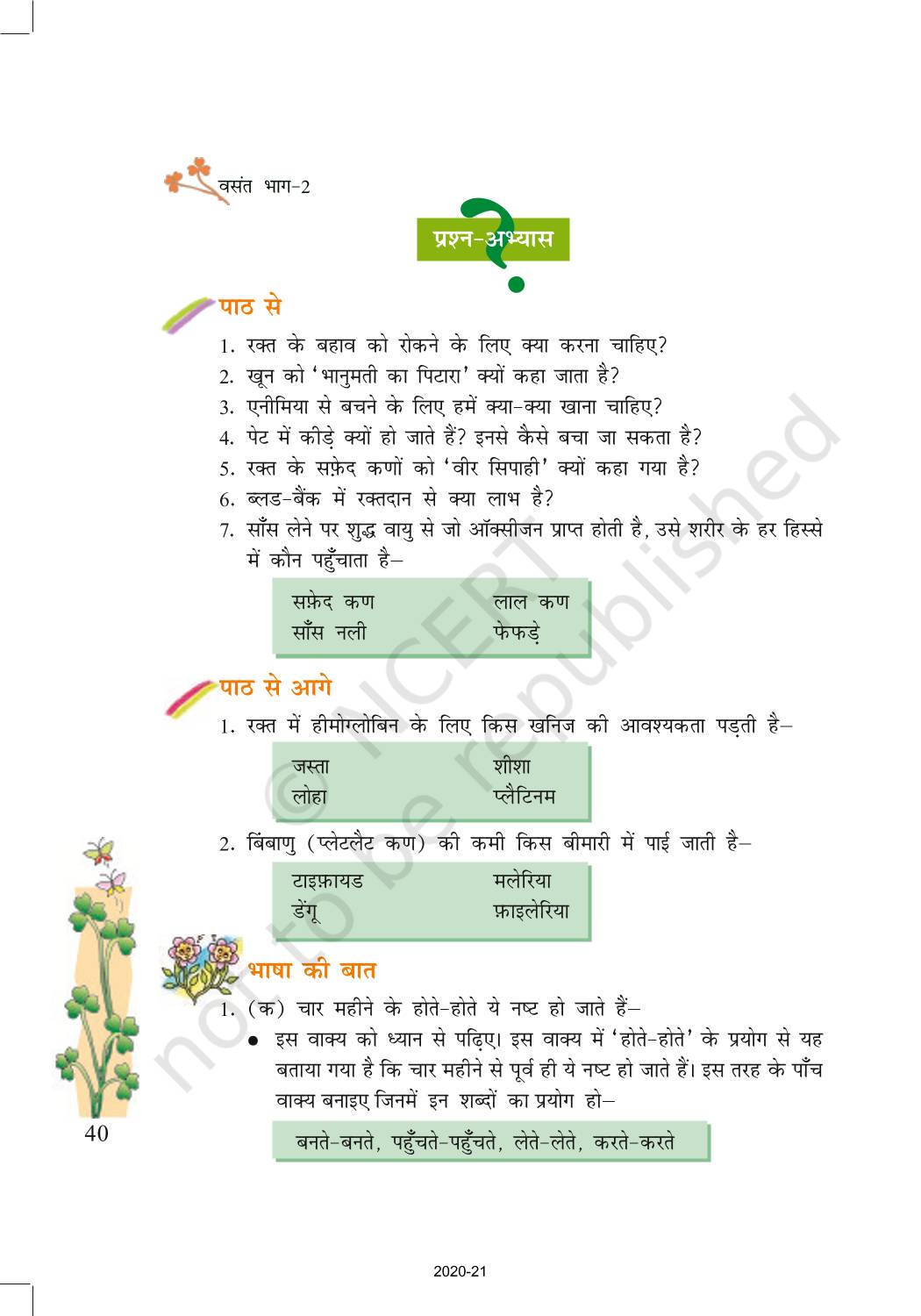 The time when students had limited options of choice for NCERT books wherein they need to go to the bookstore to buy the books but here at BeTrained.in, you can read the complete chapter-Rakt Aur Hamara Sharir of NCERT books for class 7 Hindi Vasant Part 2. If CBSE class 7 students are finding it hard to search for NCERT Hindi Vasant Part 2 books online, then this is the right place as we have provided the textbooks of NCERT chapter wise. These books are available on our website for free along with NCERT Solutions and Exemplar solutions.