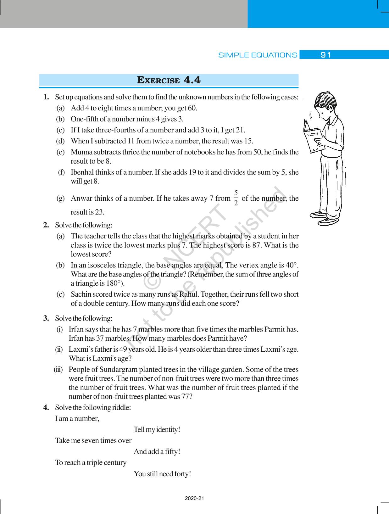 The time when students had limited options of choice for NCERT books wherein they need to go to the bookstore to buy the books but here at BeTrained.in, you can read the complete chapter-Simple Equations of NCERT books for class 7 Mathematics. If CBSE class 7 students are finding it hard to search for NCERT Mathematics books online, then this is the right place as we have provided the textbooks of NCERT chapter wise. These books are available on our website for free along with NCERT Solutions and Exemplar solutions.