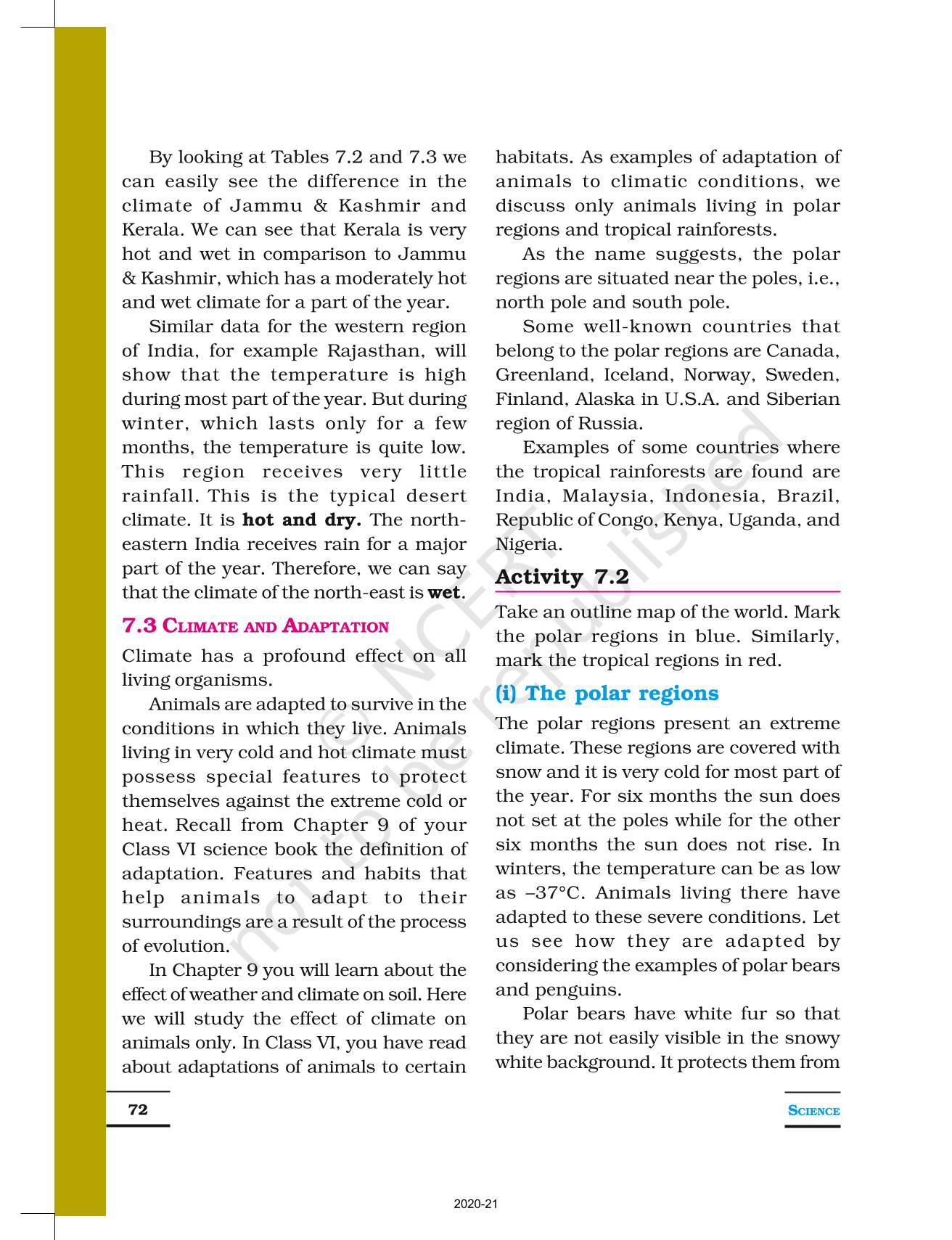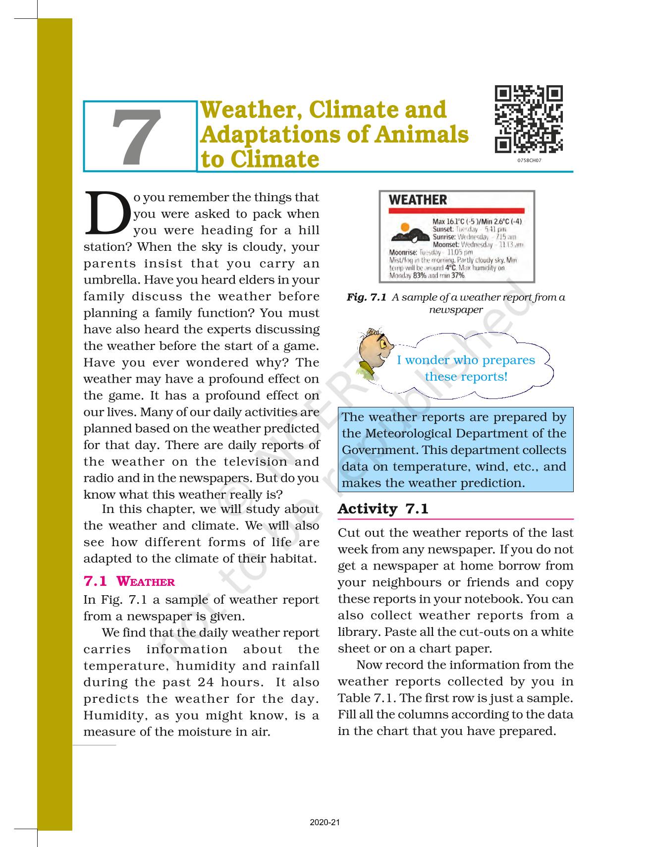 The time when students had limited options of choice for NCERT books wherein they need to go to the bookstore to buy the books but here at BeTrained.in, you can read the complete chapter-Weather Climate And Adaptations Of Animals To Climate of NCERT books for class 7 Science. If CBSE class 7 students are finding it hard to search for NCERT Science books online, then this is the right place as we have provided the textbooks of NCERT chapter wise. These books are available on our website for free along with NCERT Solutions and Exemplar solutions.