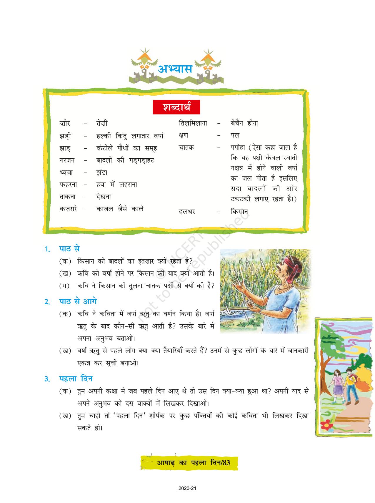 The time when students had limited options of choice for NCERT books wherein they need to go to the bookstore to buy the books but here at BeTrained.in, you can read the complete chapter-Ashaadh Ka Pahla Din of NCERT books for class 8 Hindi Durva Part 3. If CBSE class 8 students are finding it hard to search for NCERT Hindi Durva Part 3 books online, then this is the right place as we have provided the textbooks of NCERT chapter wise. These books are available on our website for free along with NCERT Solutions and Exemplar solutions.