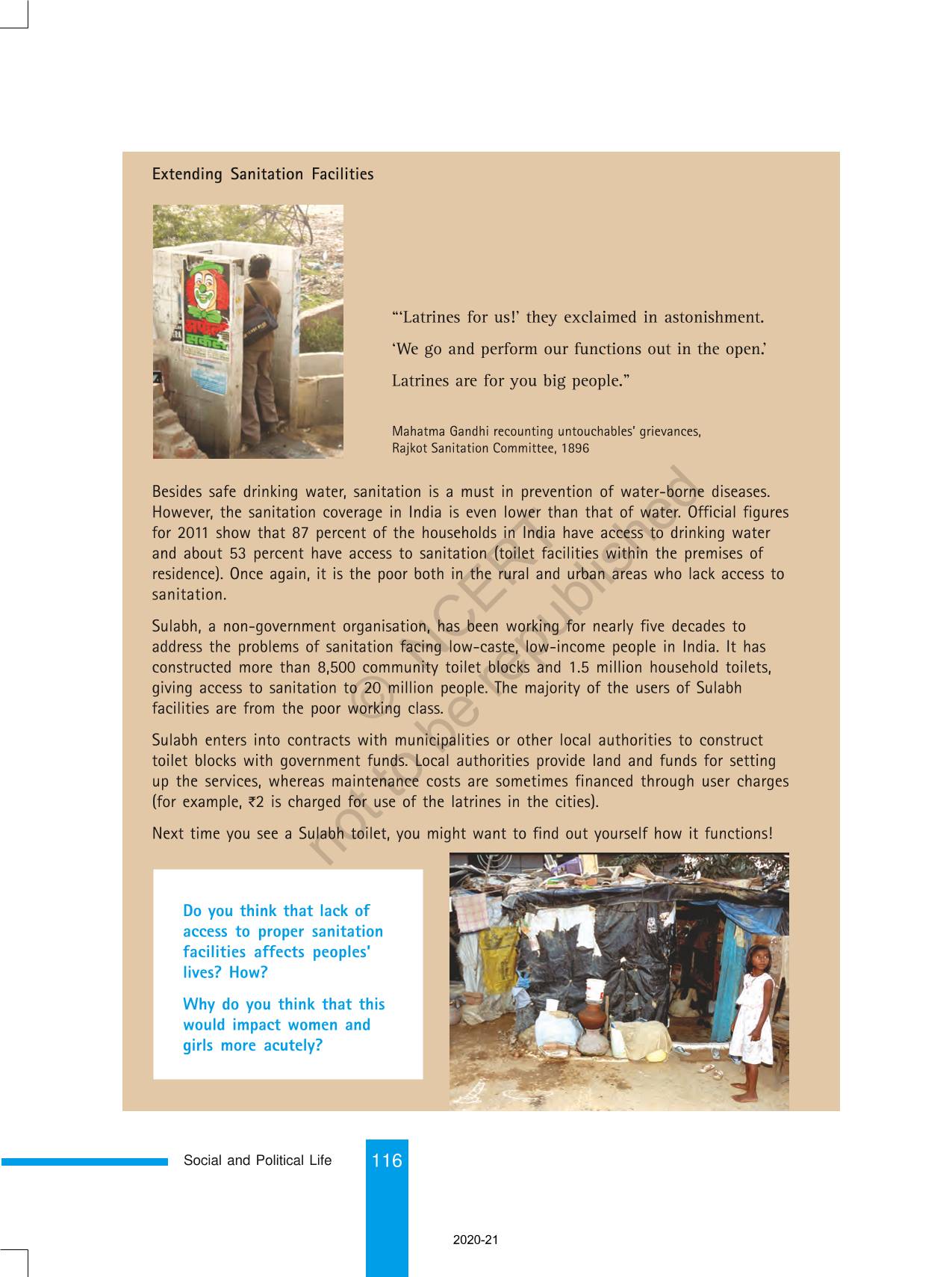 The time when students had limited options of choice for NCERT books wherein they need to go to the bookstore to buy the books but here at BeTrained.in, you can read the complete chapter-Public Facilities of NCERT books for class 8 Social And Political Life III. If CBSE class 8 students are finding it hard to search for NCERT Social And Political Life III books online, then this is the right place as we have provided the textbooks of NCERT chapter wise. These books are available on our website for free along with NCERT Solutions and Exemplar solutions.