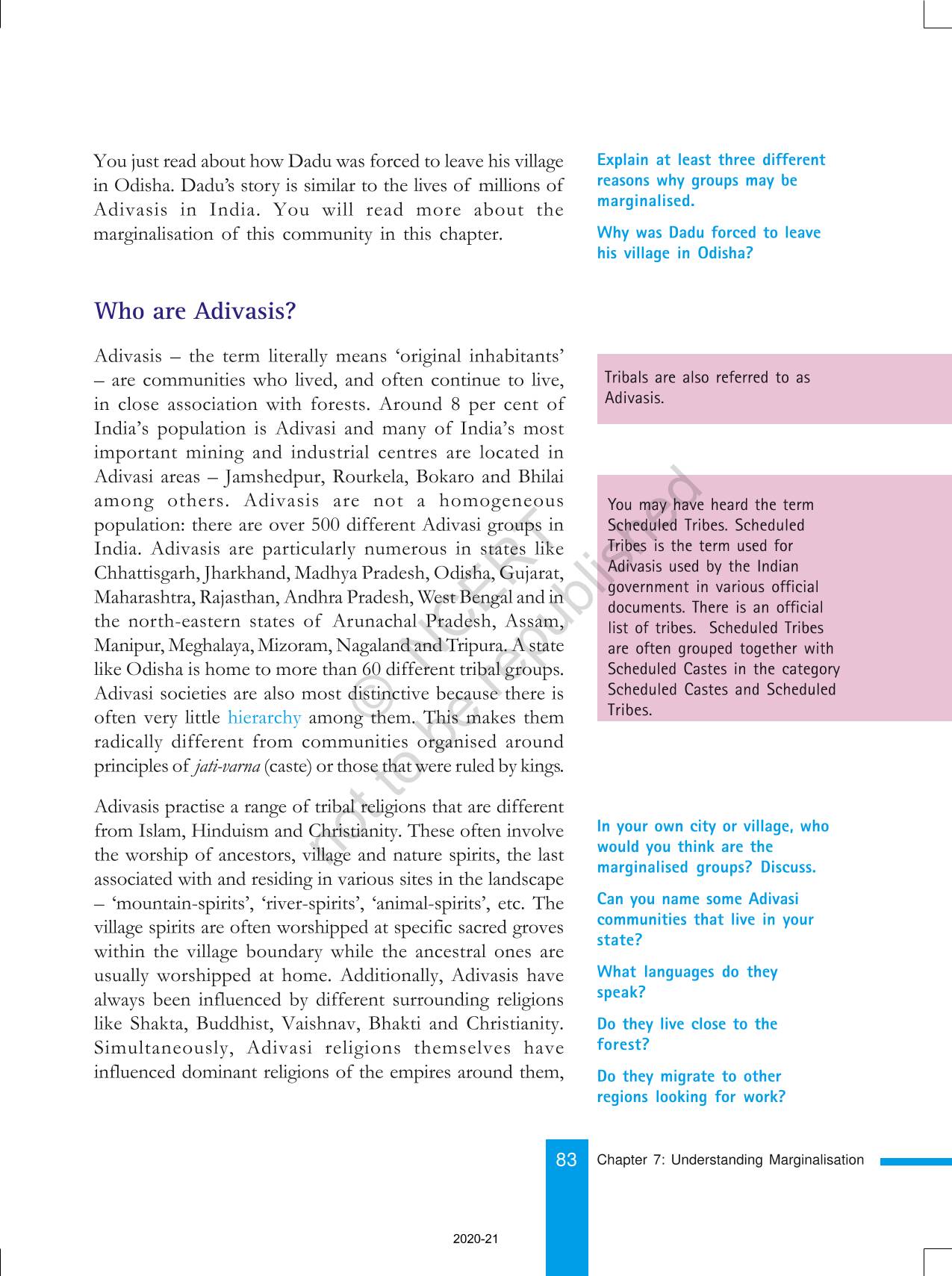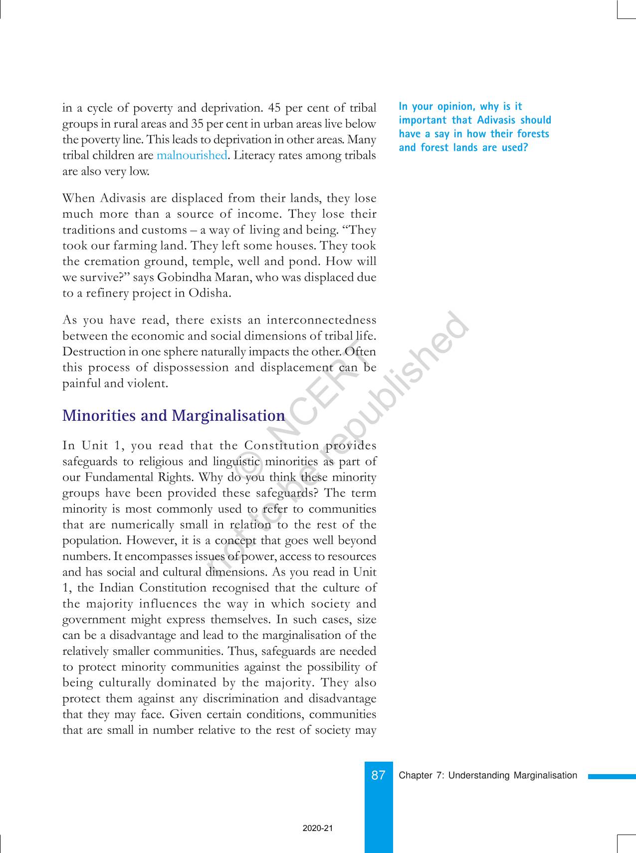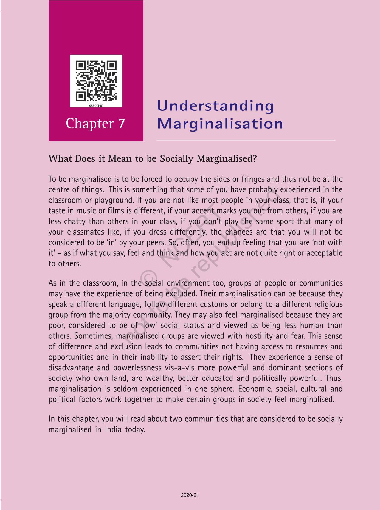 The time when students had limited options of choice for NCERT books wherein they need to go to the bookstore to buy the books but here at BeTrained.in, you can read the complete chapter-Understanding Marginalisation of NCERT books for class 8 Social And Political Life III. If CBSE class 8 students are finding it hard to search for NCERT Social And Political Life III books online, then this is the right place as we have provided the textbooks of NCERT chapter wise. These books are available on our website for free along with NCERT Solutions and Exemplar solutions.