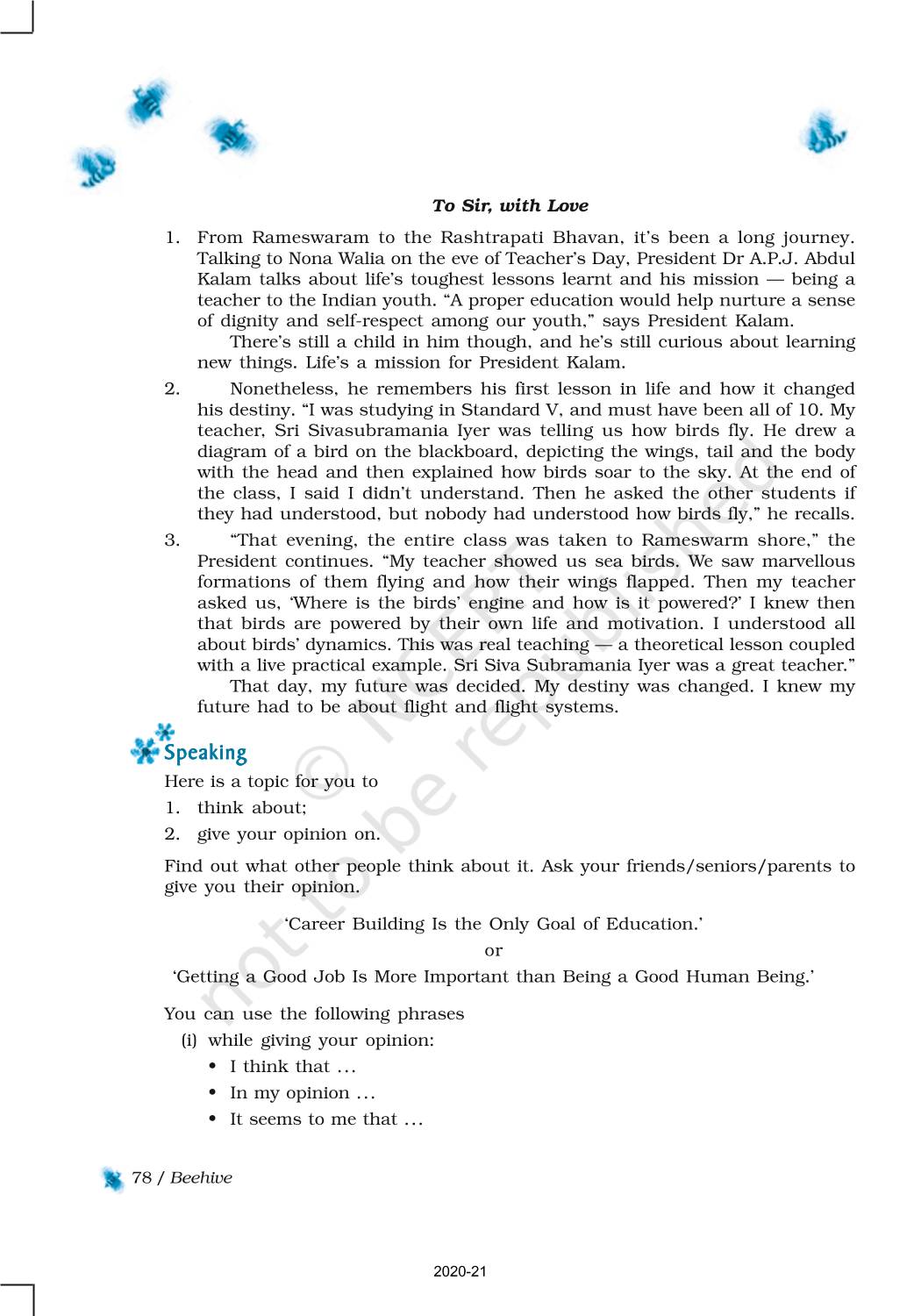English Beehive NCERT Chapter for Class 9th