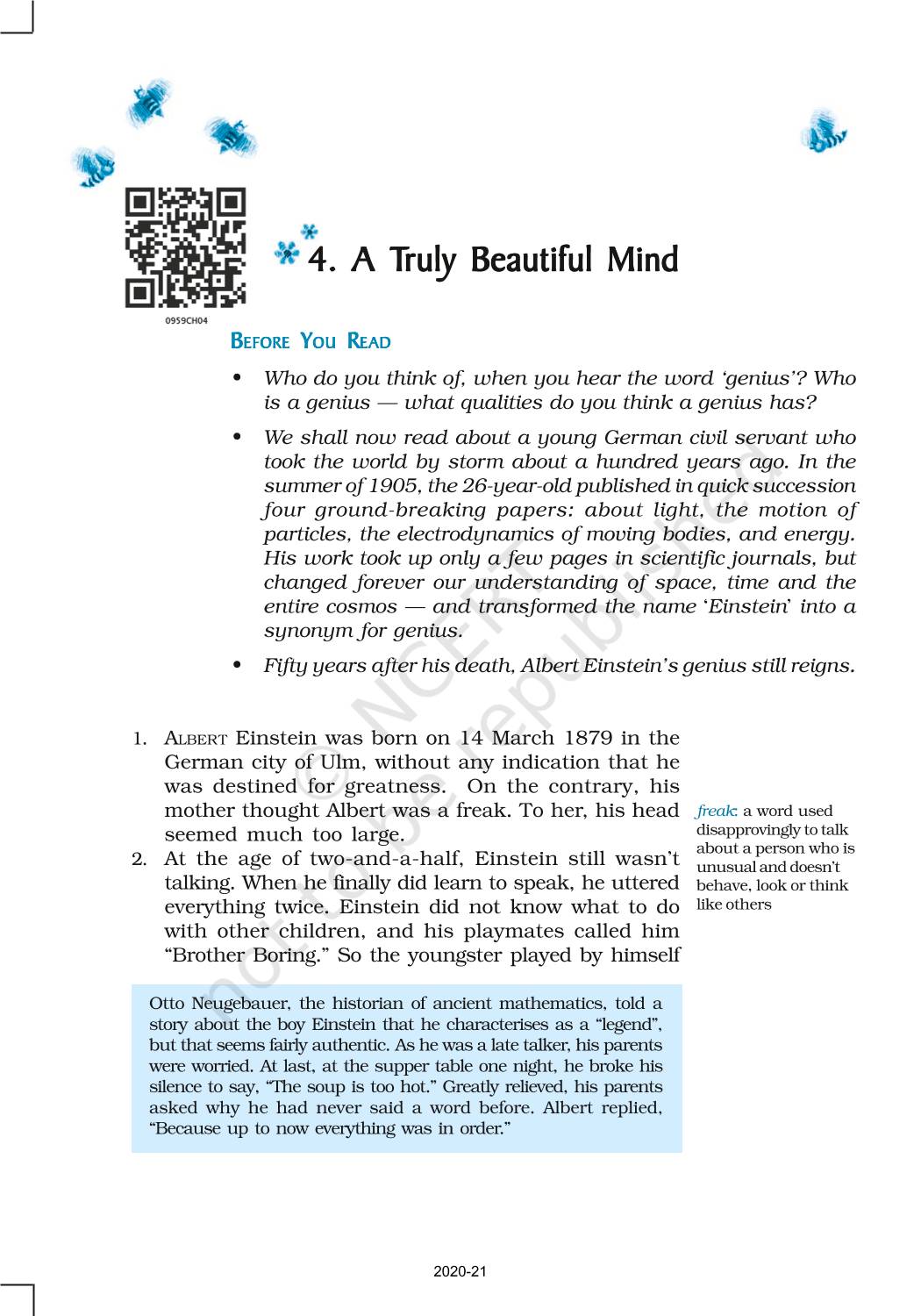 The time when students had limited options of choice for NCERT books wherein they need to go to the bookstore to buy the books but here at BeTrained.in, you can read the complete chapter-Truly Beautiful Mind of NCERT books for class 9 English Beehive. If CBSE class 9 students are finding it hard to search for NCERT English Beehive books online, then this is the right place as we have provided the textbooks of NCERT chapter wise. These books are available on our website for free along with NCERT Solutions and Exemplar solutions.