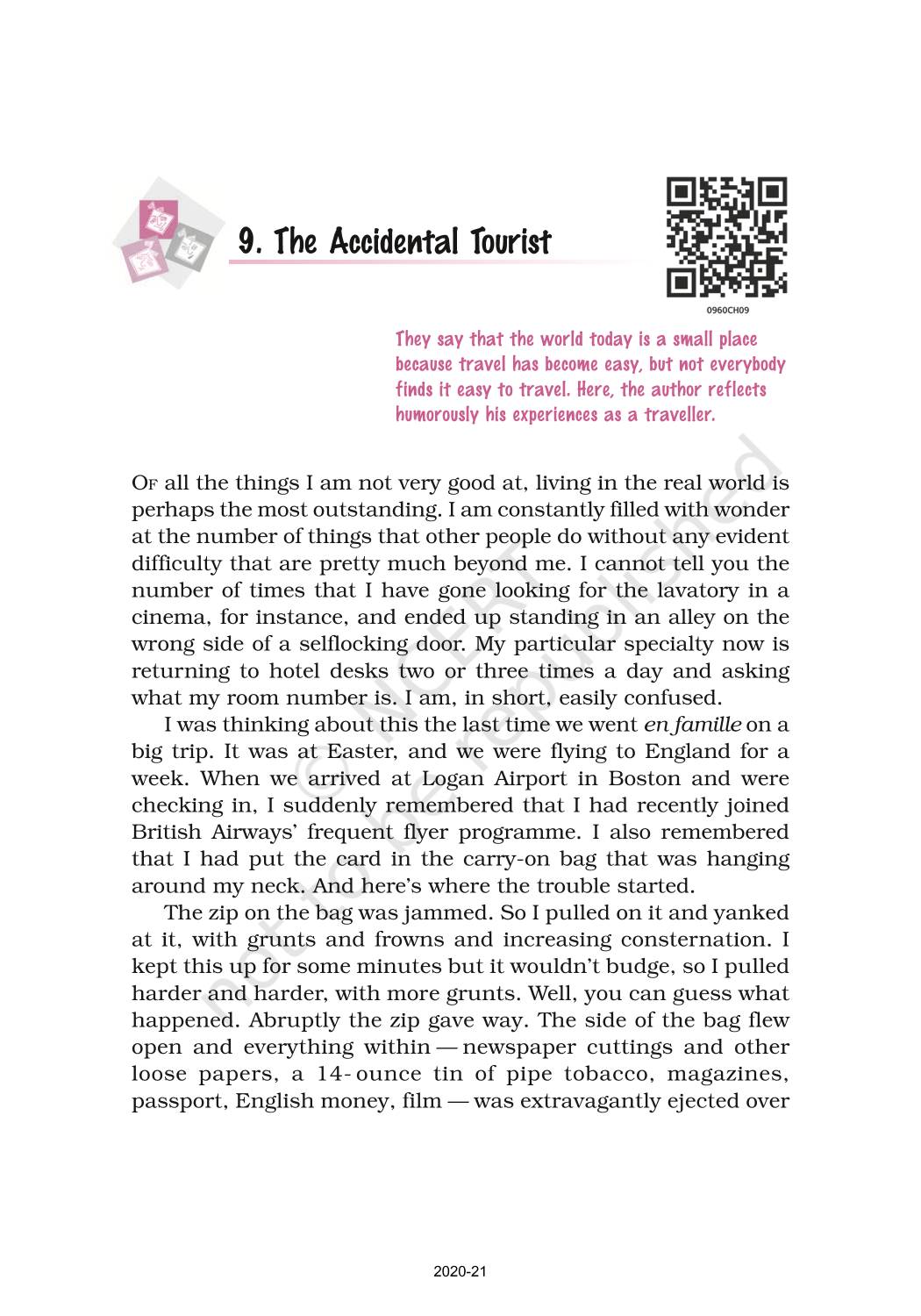 The time when students had limited options of choice for NCERT books wherein they need to go to the bookstore to buy the books but here at BeTrained.in, you can read the complete chapter-The Accidental Tourist of NCERT books for class 9 English Moments. If CBSE class 9 students are finding it hard to search for NCERT English Moments books online, then this is the right place as we have provided the textbooks of NCERT chapter wise. These books are available on our website for free along with NCERT Solutions and Exemplar solutions.