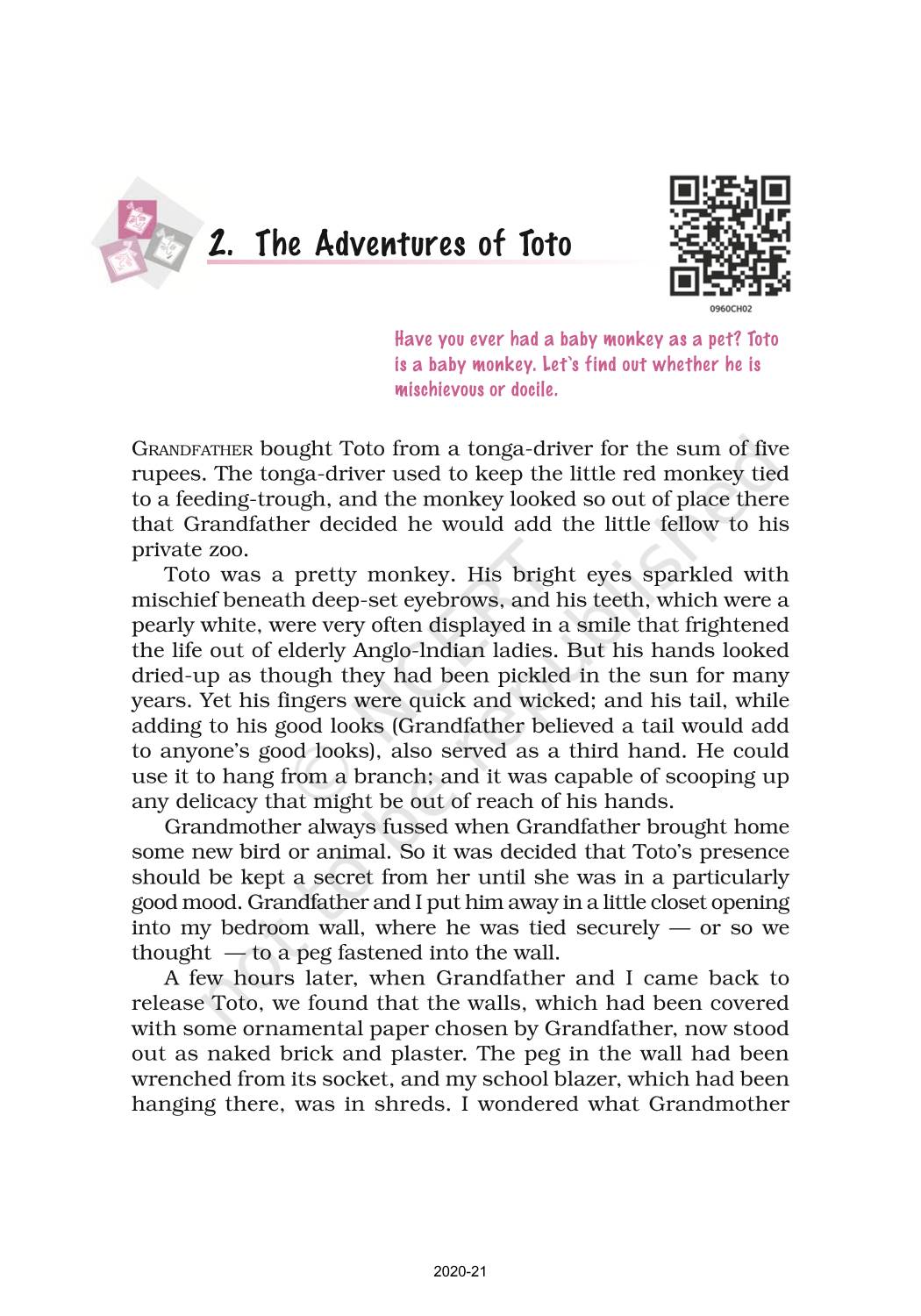 The time when students had limited options of choice for NCERT books wherein they need to go to the bookstore to buy the books but here at BeTrained.in, you can read the complete chapter-The Adventures Of Toto of NCERT books for class 9 English Moments. If CBSE class 9 students are finding it hard to search for NCERT English Moments books online, then this is the right place as we have provided the textbooks of NCERT chapter wise. These books are available on our website for free along with NCERT Solutions and Exemplar solutions.