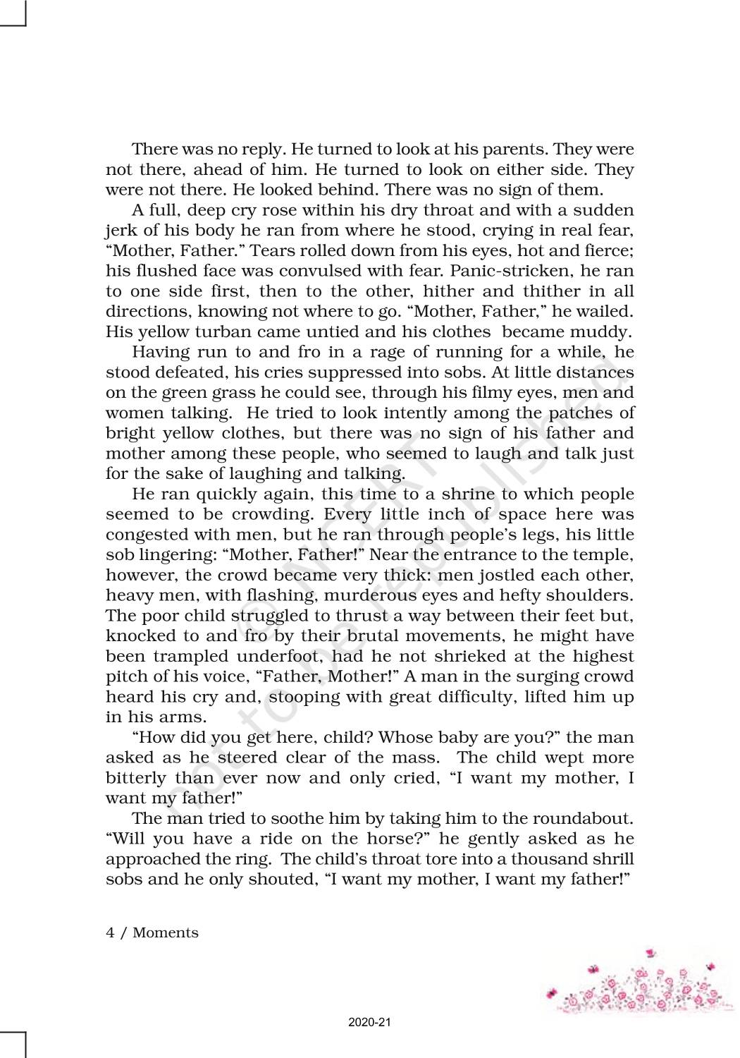 The time when students had limited options of choice for NCERT books wherein they need to go to the bookstore to buy the books but here at BeTrained.in, you can read the complete chapter-The Lost Child of NCERT books for class 9 English Moments. If CBSE class 9 students are finding it hard to search for NCERT English Moments books online, then this is the right place as we have provided the textbooks of NCERT chapter wise. These books are available on our website for free along with NCERT Solutions and Exemplar solutions.
